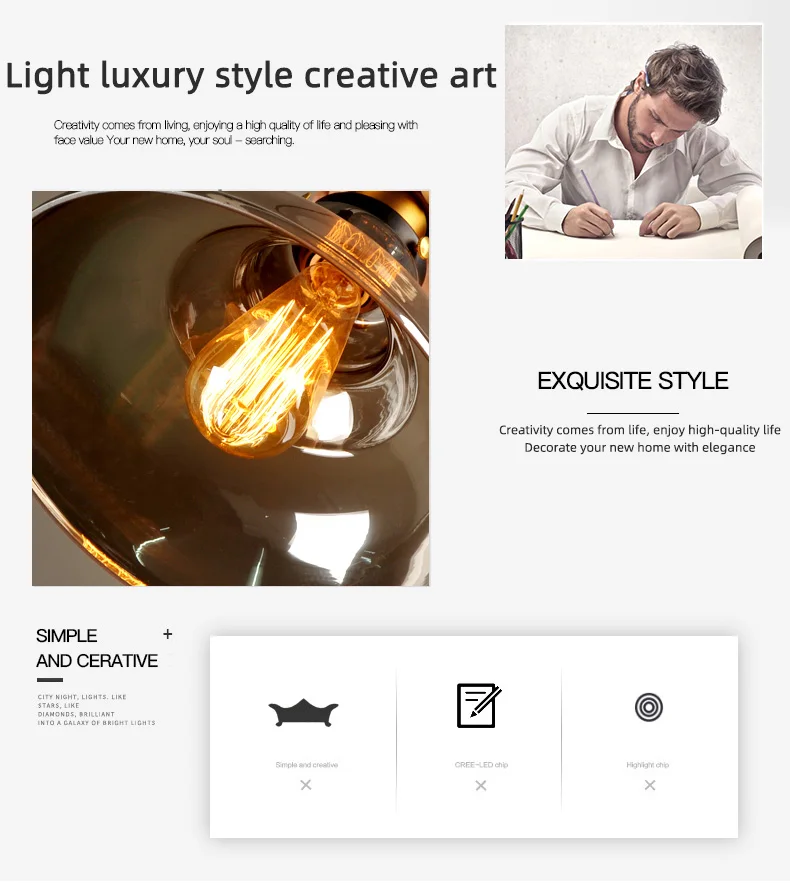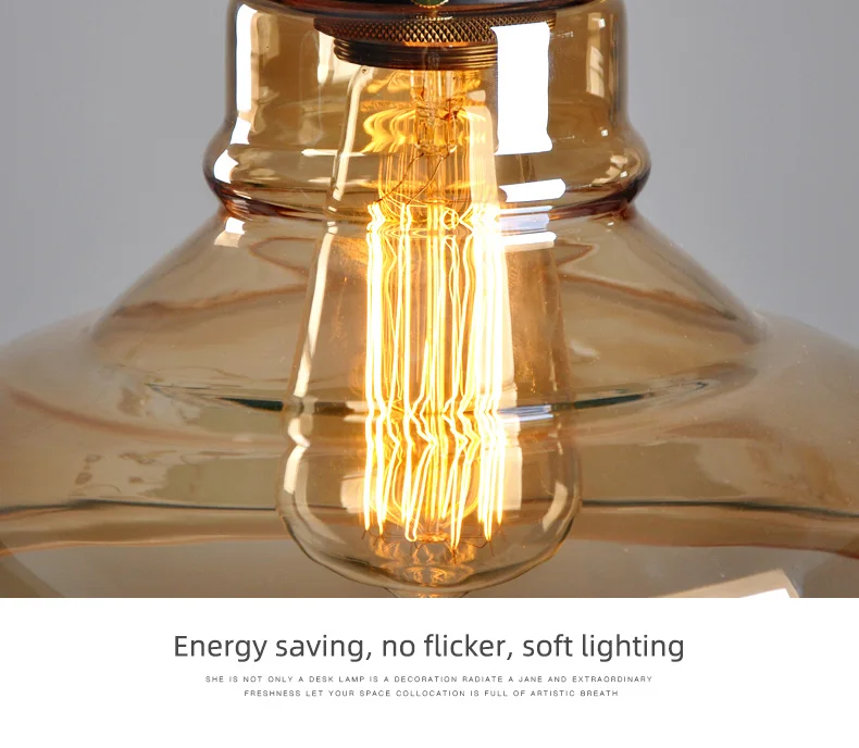 Подвесной светильник в нордическом стиле ретро Лофт прозрачныйянтар...