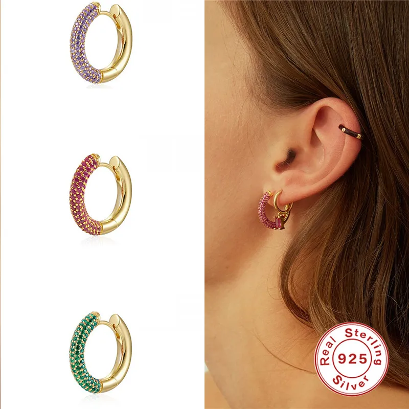 Женские U-образные серьги-кольца с разноцветным цирконием Aide S925...