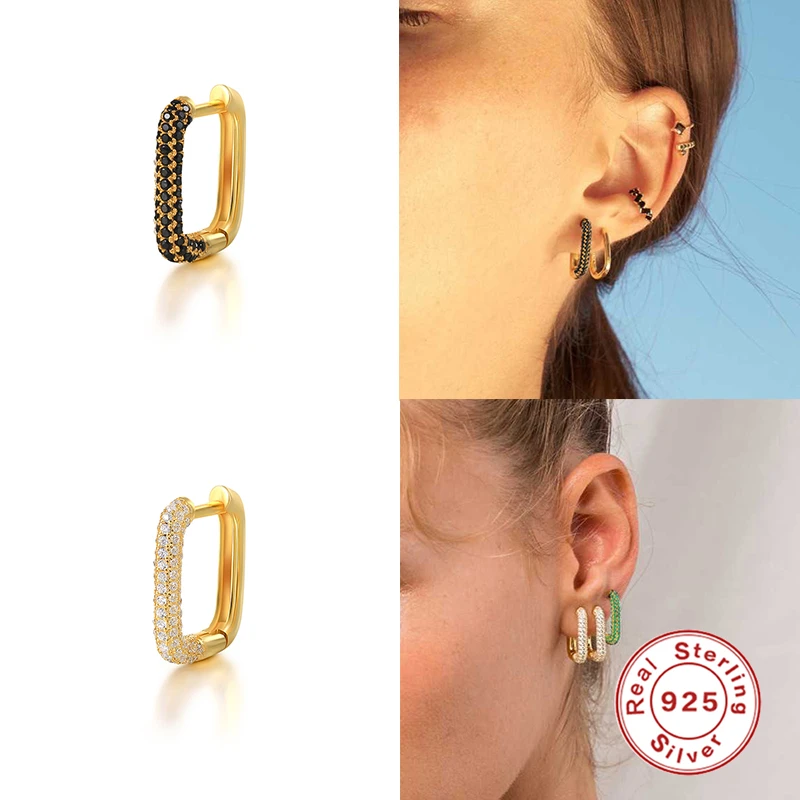 1 шт. 925 стерлингового серебра Красочные Циркон квадратные серьги-...