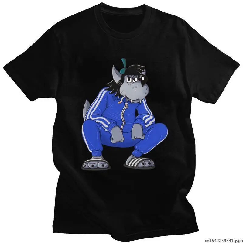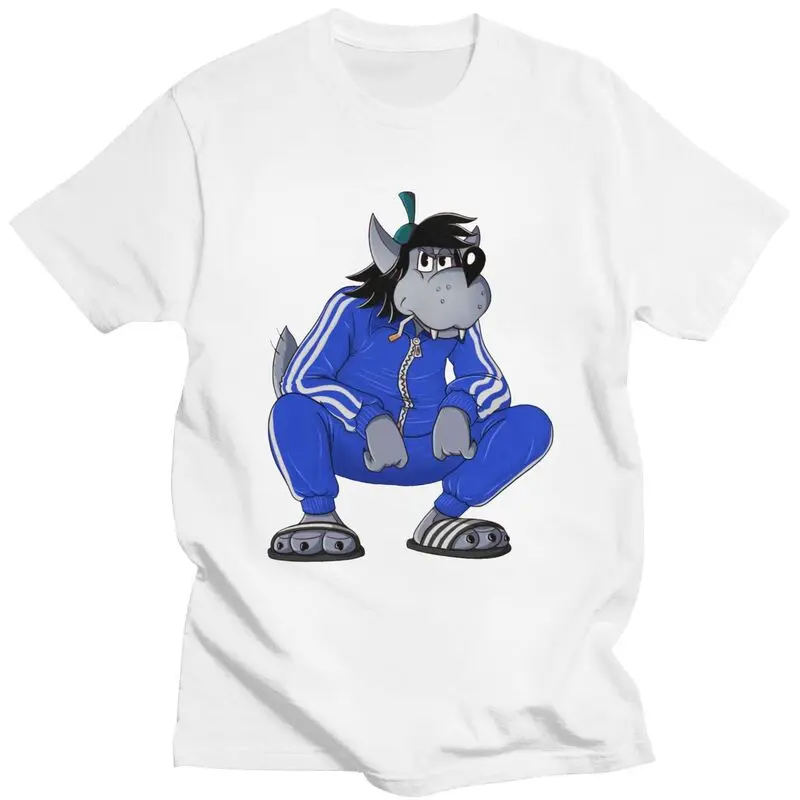 Мужская футболка с принтом юмора Ну погоди, волк, предварительно усаженная футболка, футболка с комиксом из Советского Союза, городская футболка с коротким рукавом, одежда
