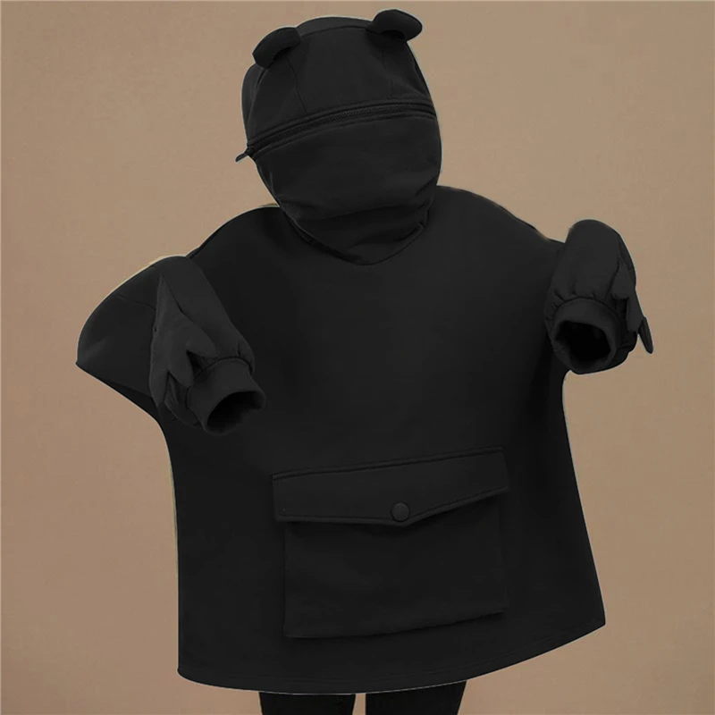 Женский пуловер с принтом лягушки, толстовка с капюшоном и карманами на молнии, женский топ в стиле Харадзюку, Зимние толстовки с декоративными куклами