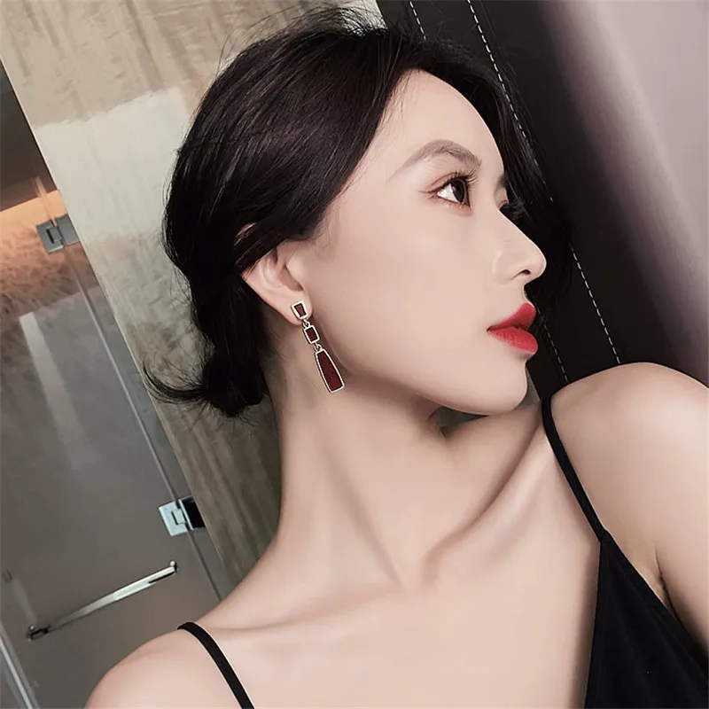 Высококачественные элегантные золотые Геометрические Квадратные красные длинные серьги в стиле ретро модный дизайн французские романтические изысканные темпераментные серьги