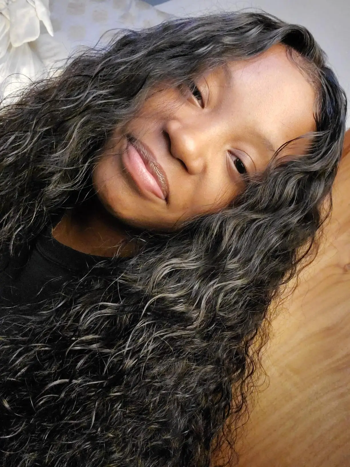 Мягкие и полные волосы. Локоны действительно красивые, и кружево хорошо проложено. Он был предварительно выгнут, поэтому вам не нужно было много выщипывать, но я все еще немного вставал и выщипывал больше.