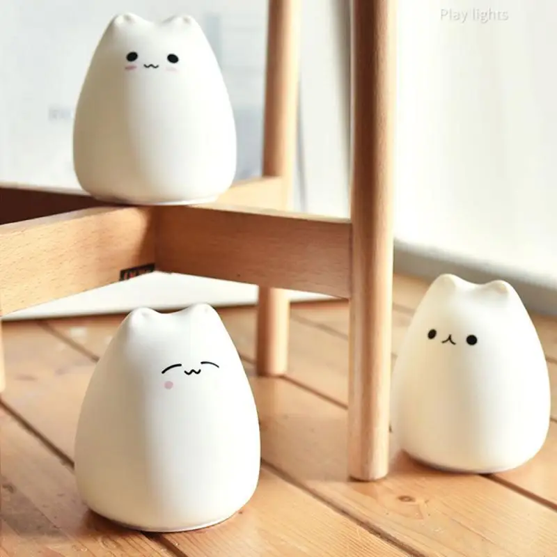 Милая маленькая кошка с сенсорным управлением, светодиодный ночные светильники на батарейках, мягкая силиконовая светодиодная лампа, фонарь, подарок, декоративная лампа, декоративная лампа