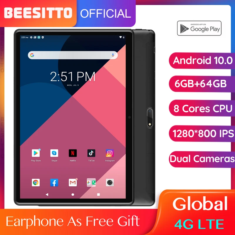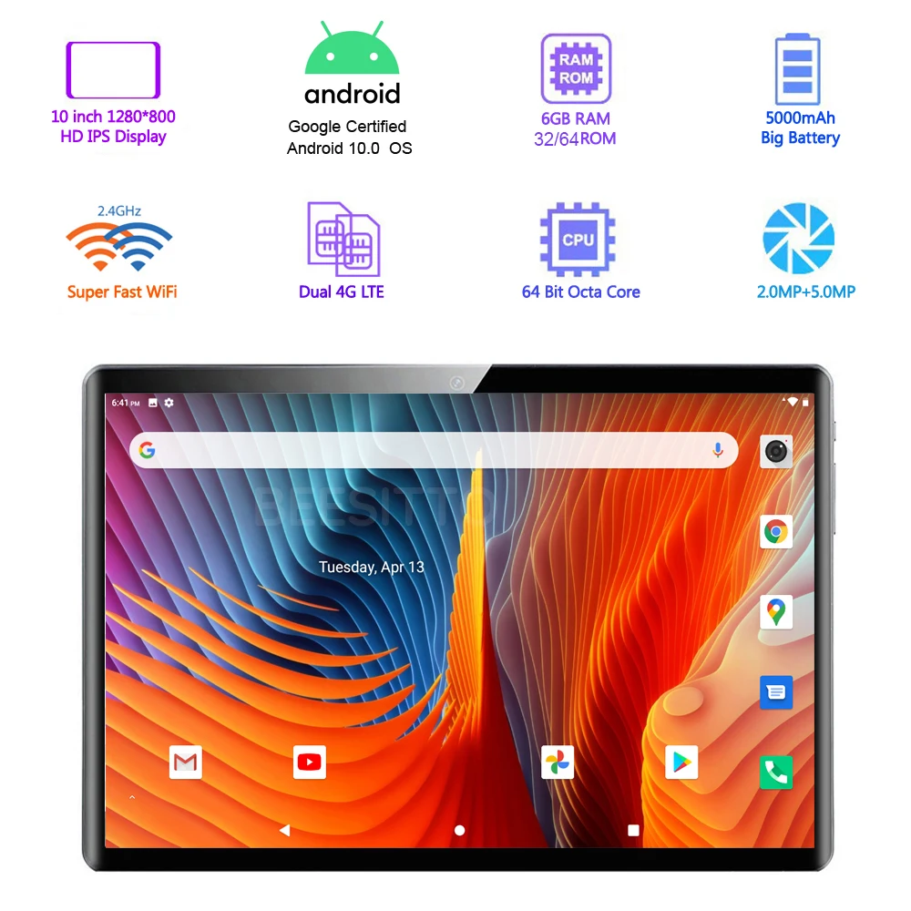 10 дюймов ОС Android 10,0 восьмиядерных процессор планшетный ПК с двумя сим-картами 4 аппарат не привязан к оператору сотовой связи 6 ГБ Оперативная память 64 Гб Встроенная память Две камеры Bluetooth GPS Медиа PAD