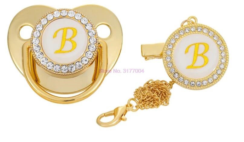 Роскошные золотые 26 инициалов разы Детская Соска с зажимами Chupet...