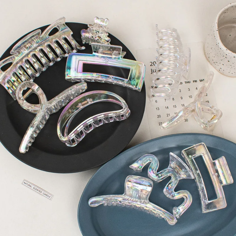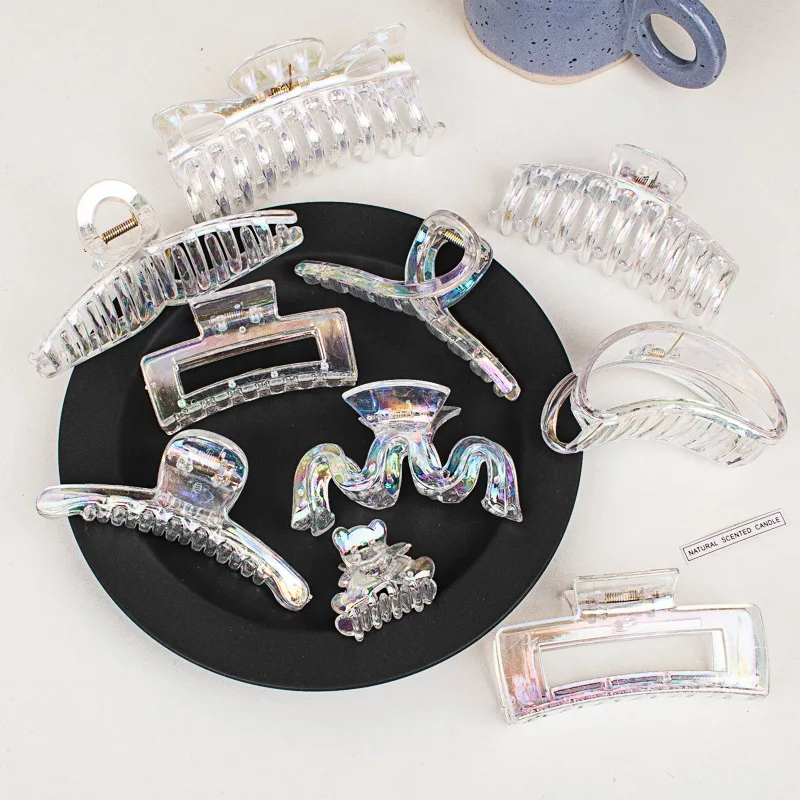 2021 новый красочный лазерный пластиковый зажим-краб для женщин и девушек жесткие зажимы для волос большой размер зажим-краб прозрачные аксессуары для волос