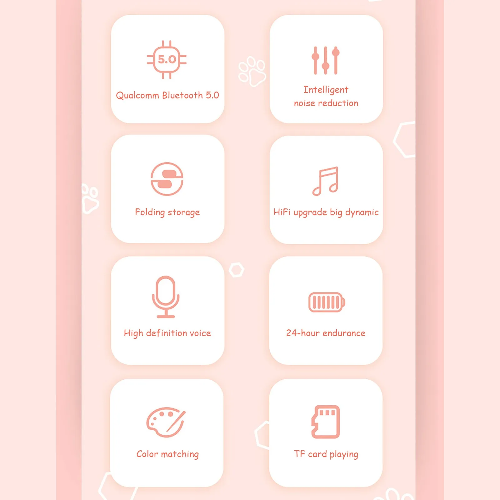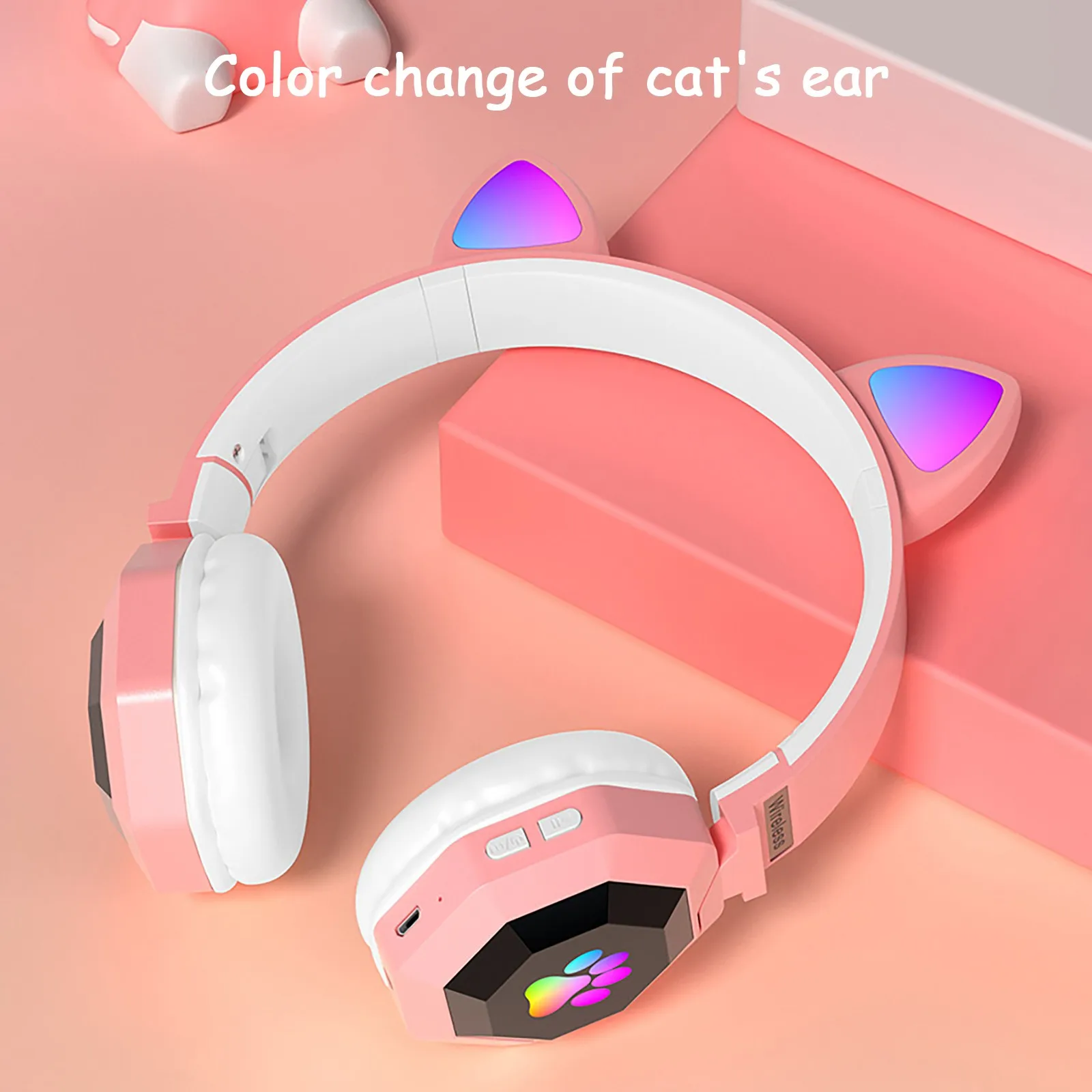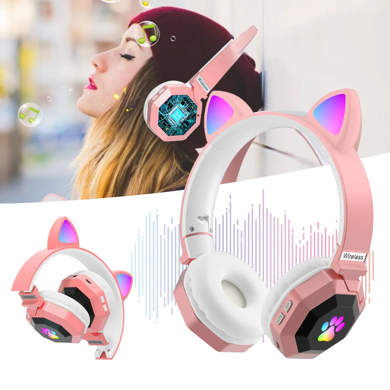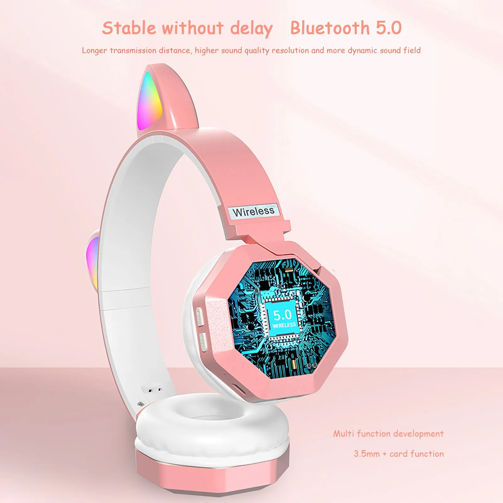 Новая беспроводная Bluetooth-гарнитура, светящиеся Bluetooth-наушники в виде кошачьих ушей, с креплением на голову