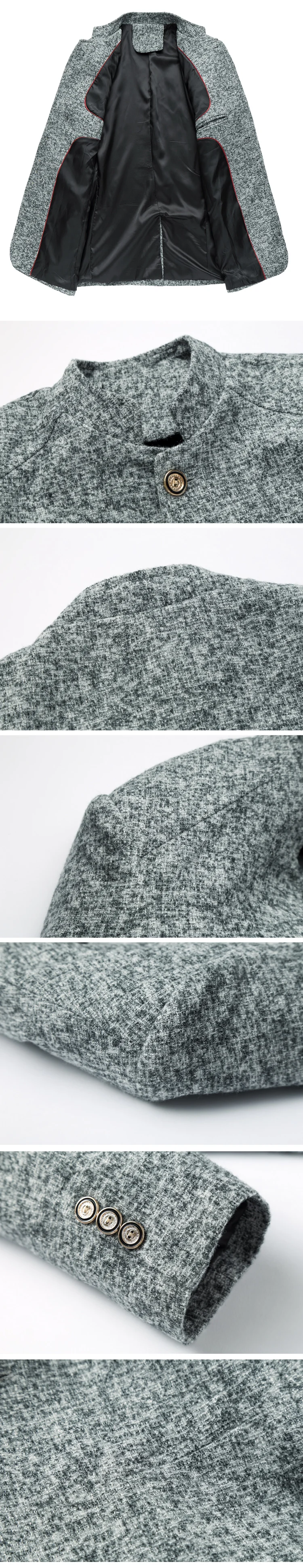 M-6XL мужской однобортный костюм-туника оверсайз с воротником-стойкой, красивый деловой повседневный костюм, Осенний приталенный Блейзер, мужской пиджак
