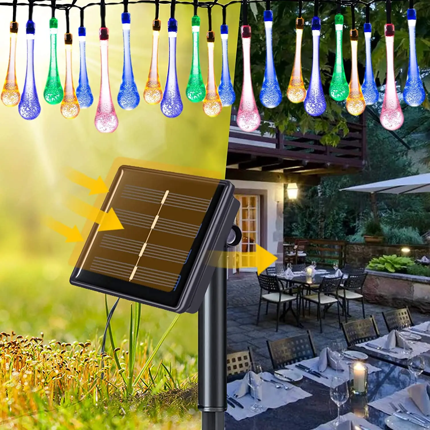 Светодиодная уличная садовая гирлянда на солнечной батарее, водонепроницаемая лампа-капелька, разноцветные осветительные приборы для патио, двора, вечерние ринки, праздника