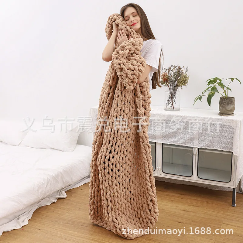 TONGDI мягкое теплое большое вязаное грубое шерстяное одеяло ручной работы милый подарок для зимы кровать диван девочка всесезонный спальный мешок