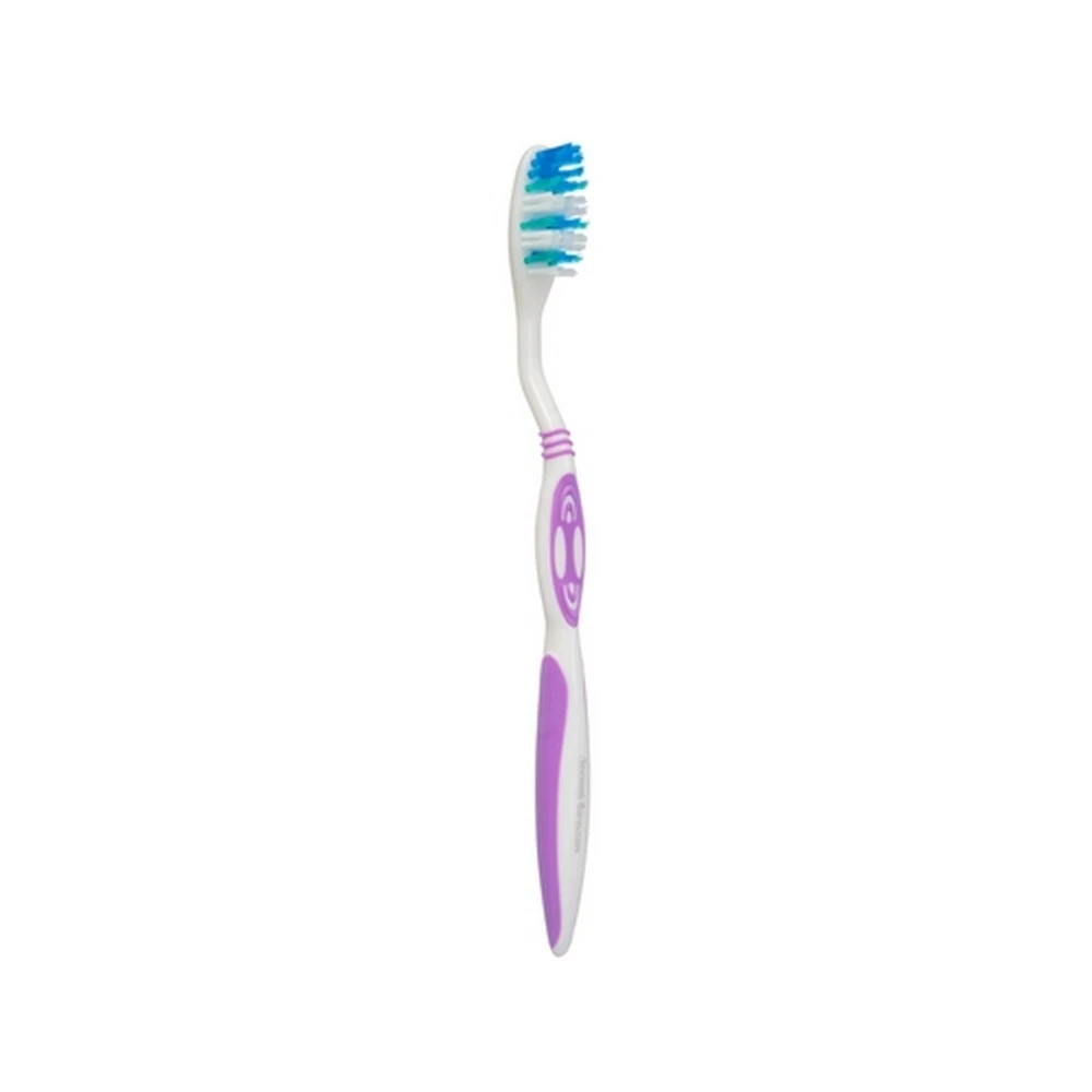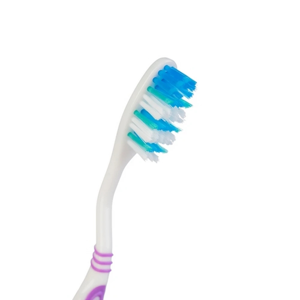 Зубная щетка Лесной бальзам Комплексный уход рекомендована для ежедневной чистки зубов при ослабленных дёснах, склонных к воспалению, подходит в период беременности. Особенности щетины:1) Жесткость щетины: средняя, щетинки закруглены на концах и не травмируют десны при чистке зубов, при этом обеспечивают высокий уровень очищения налета. 2) Щетинки зубной щетки имеют разный уровень по высоте. Такая форма щетинок позволяет тщательно удалять налет между зубов и вдоль линии десны. 3) Массаж десен, осуществляемый щетинками во время чистки зубов, улучшает кровообращение в тканях, снижая риск ослабления десен и появления проблем.4) Благодаря правильному изгибу ручки щетка без труда удаляет налет даже с дальних зубов.5) На щетке есть специальная поверхность для чистки языка (с оборотной стороны головки щетки). Регулярная чистка языка помогает избавиться от огромного количества болезнетворных микробов и бактерий, вызывающих заболевания полости рта и являющихся основной причиной появления неприятного запаха.6) Щетинки зубной щетки выполнены из искусственного материала, что снижает риск размножения бактерий в щетке при контакте с водой. Клинически доказано: регулярная чистка зубной щеткой Комплексный уход на 75% снижает скорость образования налета. Эффективность подтверждена клинически.Рекомендации: После чистки зубов щетку следует тщательно промыть от остатков пищи и поставить сушиться головкой верх. Это заметно снижает количество микроорганизмов в зубной щетке, а щетинки сохраняют свою твердость и форму.Нельзя хранить щетку в непросушенном состоянии в закрытом футляре, поскольку, на ней образуется плодотворная среда для бактерий.Следует менять зубную щетку, если щетинки начинают гнутьсяПри выборе зубной щетки рекомендуется проконсультироваться со стоматологом.