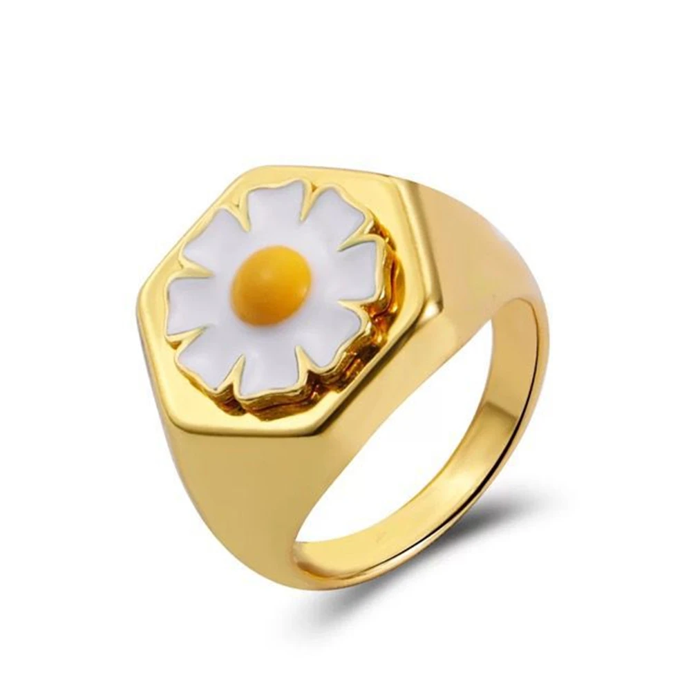 Женское кольцо из нержавеющей стали, массивное кольцо золотого цвета с цветами, 2021