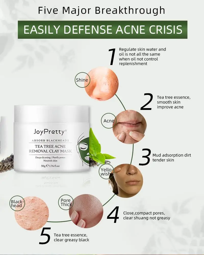 Маска Joypretty из глины чайного дерева для удаления акне, черных т...