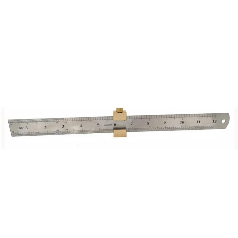 Стальная линейка, позиционирующий блок, латунный угловой плоттер, линейный маркировочный индикатор для линейки, локатор, DIY деревообрабатывающие измерительные инструменты