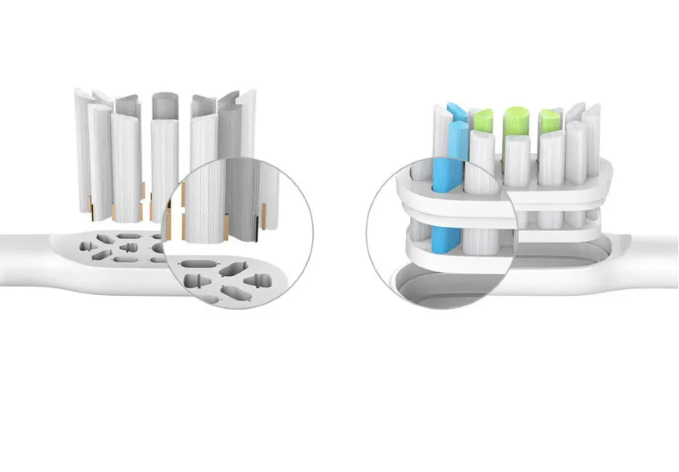 Щетинки Soocas X3 от американского производителя DoPont изготовлены из безвредного для здоровья материала, не содержат в своем составе металл. Щетинки крепятся к головке насадки с помощью горячего сплавления. Они не подвержены загрязнению, что делает насадку более гигиеничной. Насадки поставляются в стерильной вакуумной упаковке