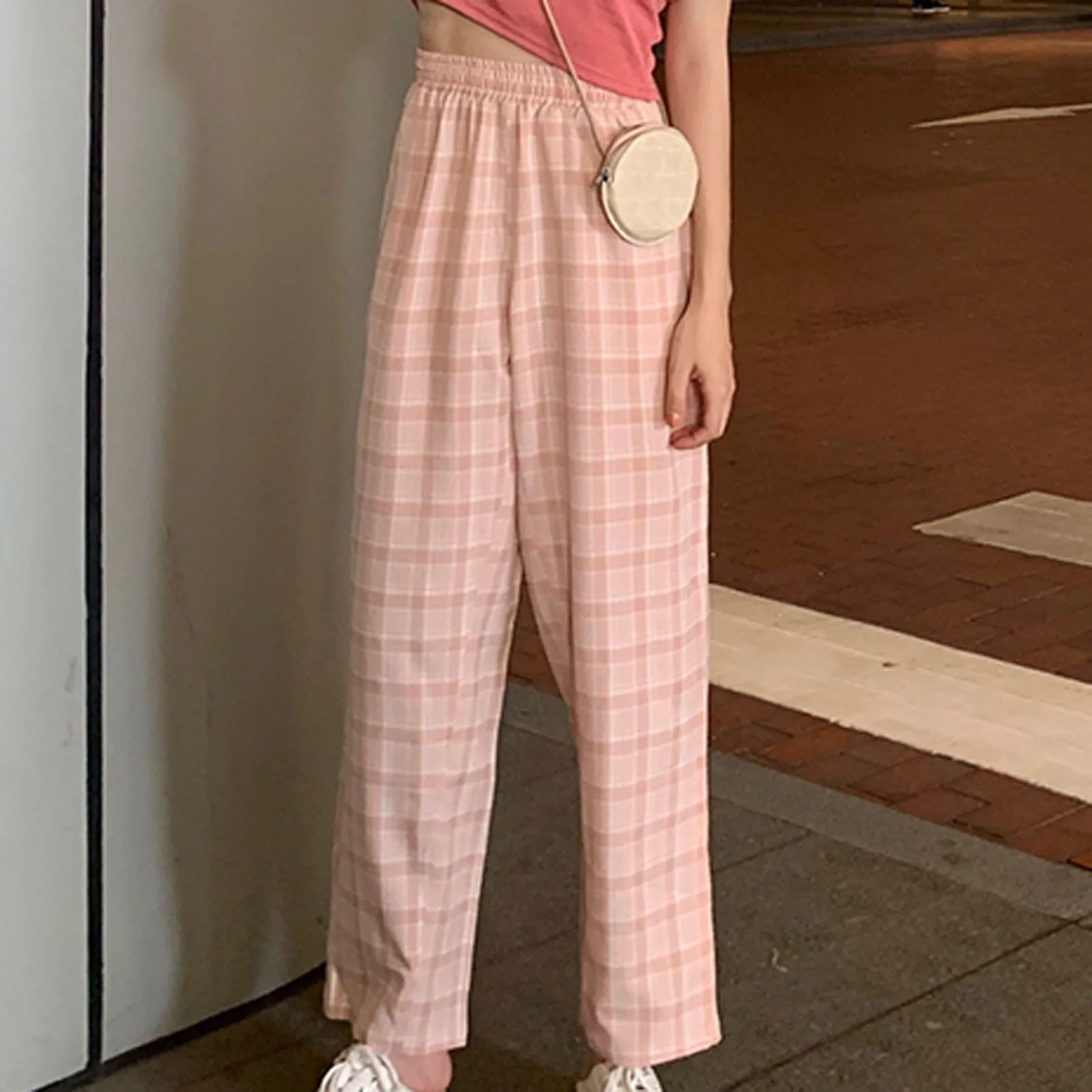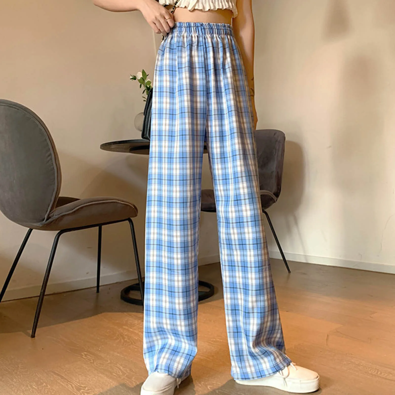 Модные женские повседневные клетчатые свободные женские широкие брюки с высокой талией, длинные брюки