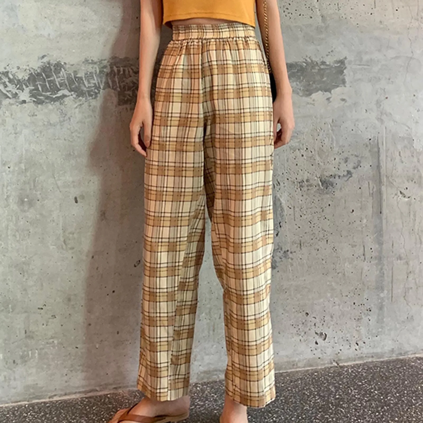 Брюки женские клетчатые с широкими штанинами, модные повседневные свободные Штаны в клетку, с завышенной талией, штаны с широкими штанинами, женские Штаны, ский