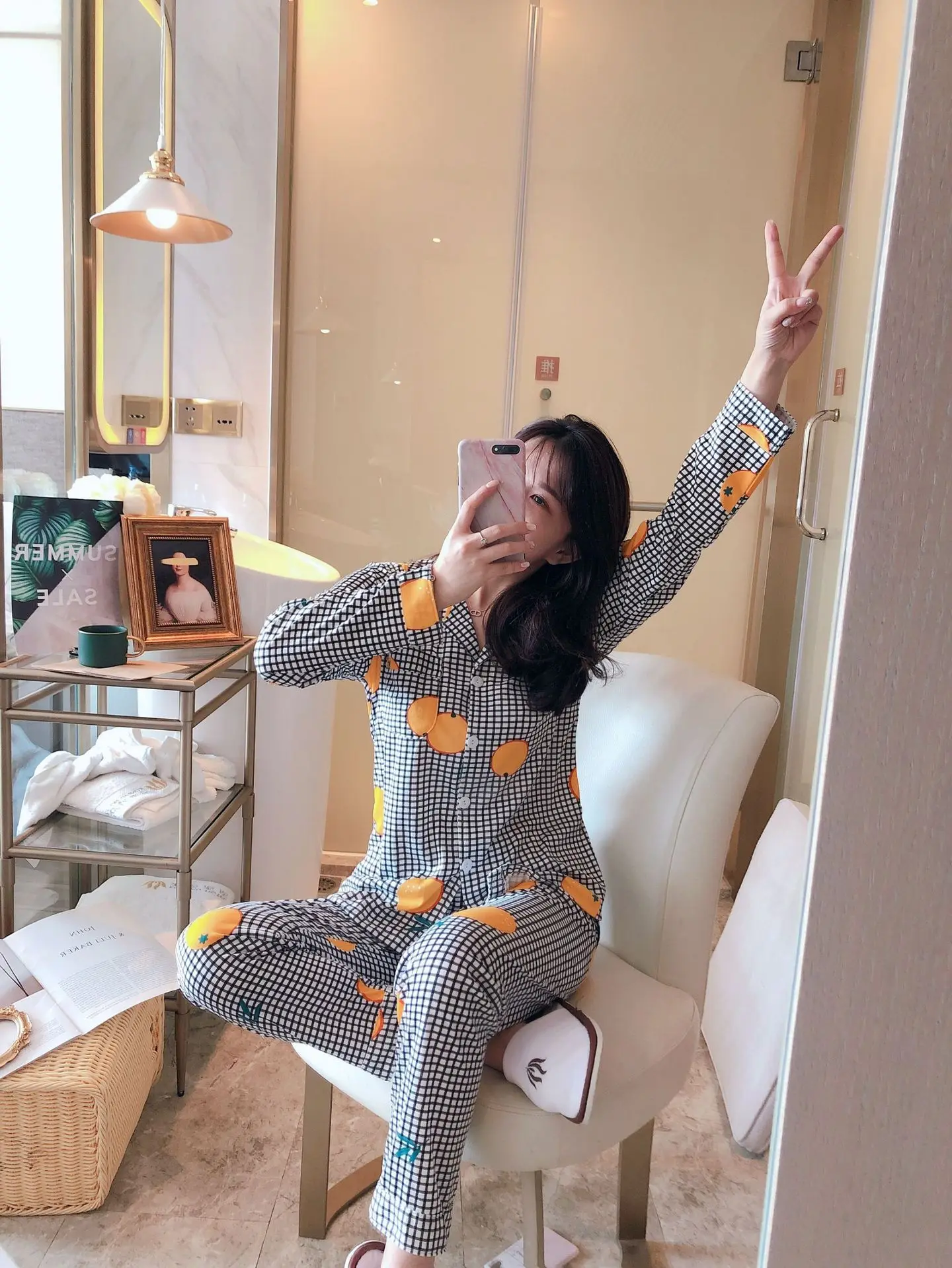 Новинка 2021, осенняя хлопковая одежда для сна, пижамный комплект, ...