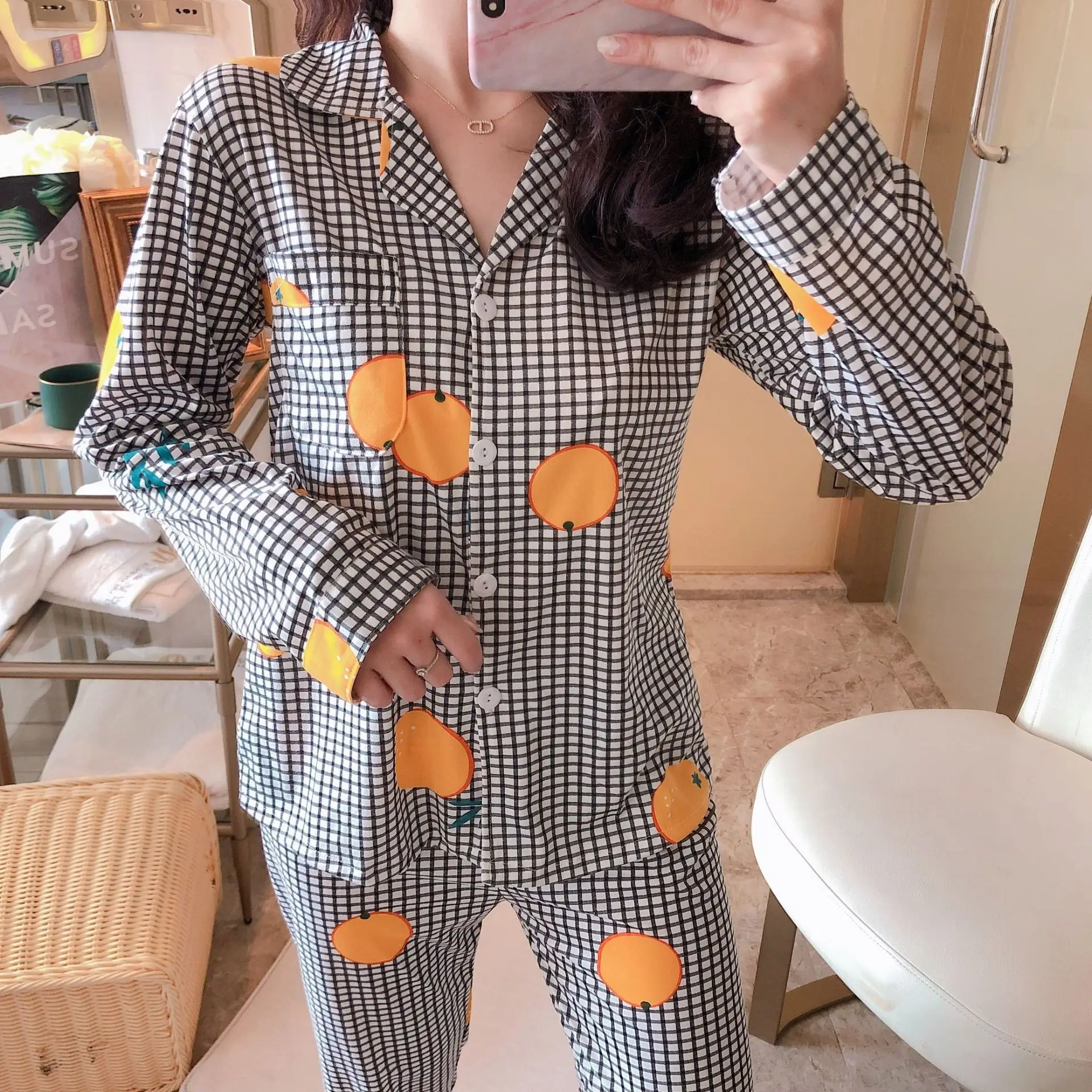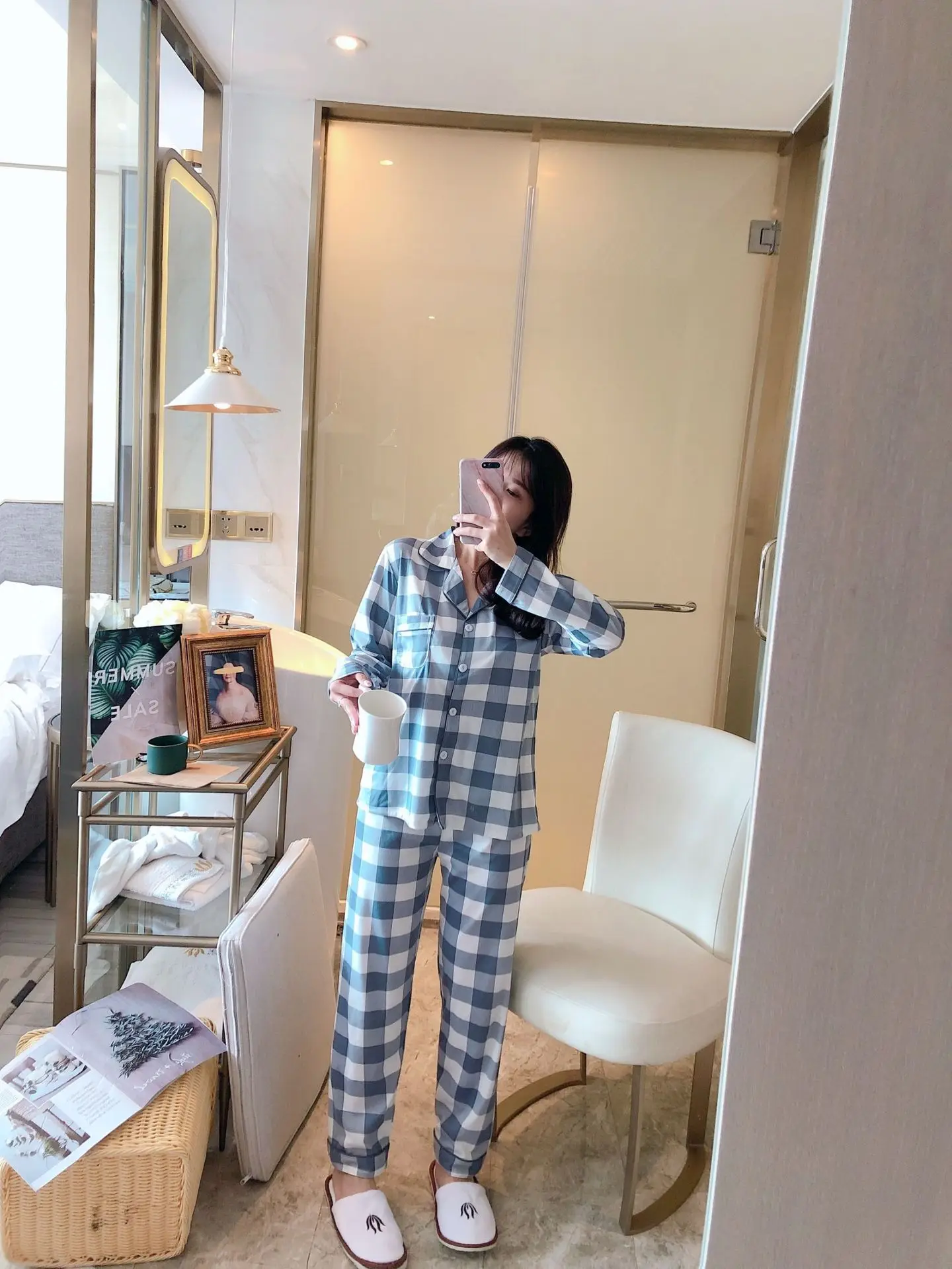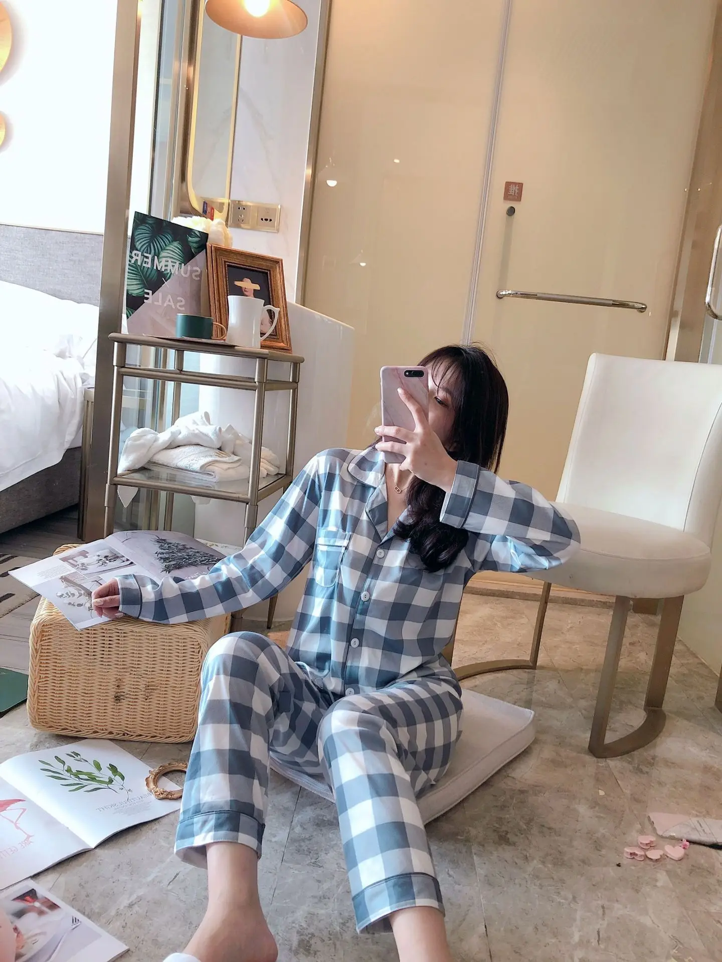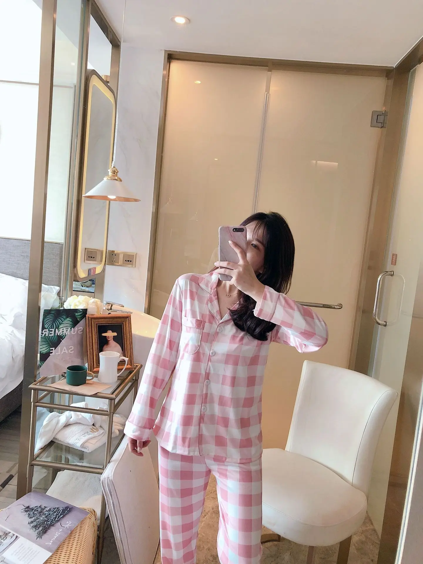 Пижамный комплект в клетку в Корейском стиле, домашняя одежда для ж...