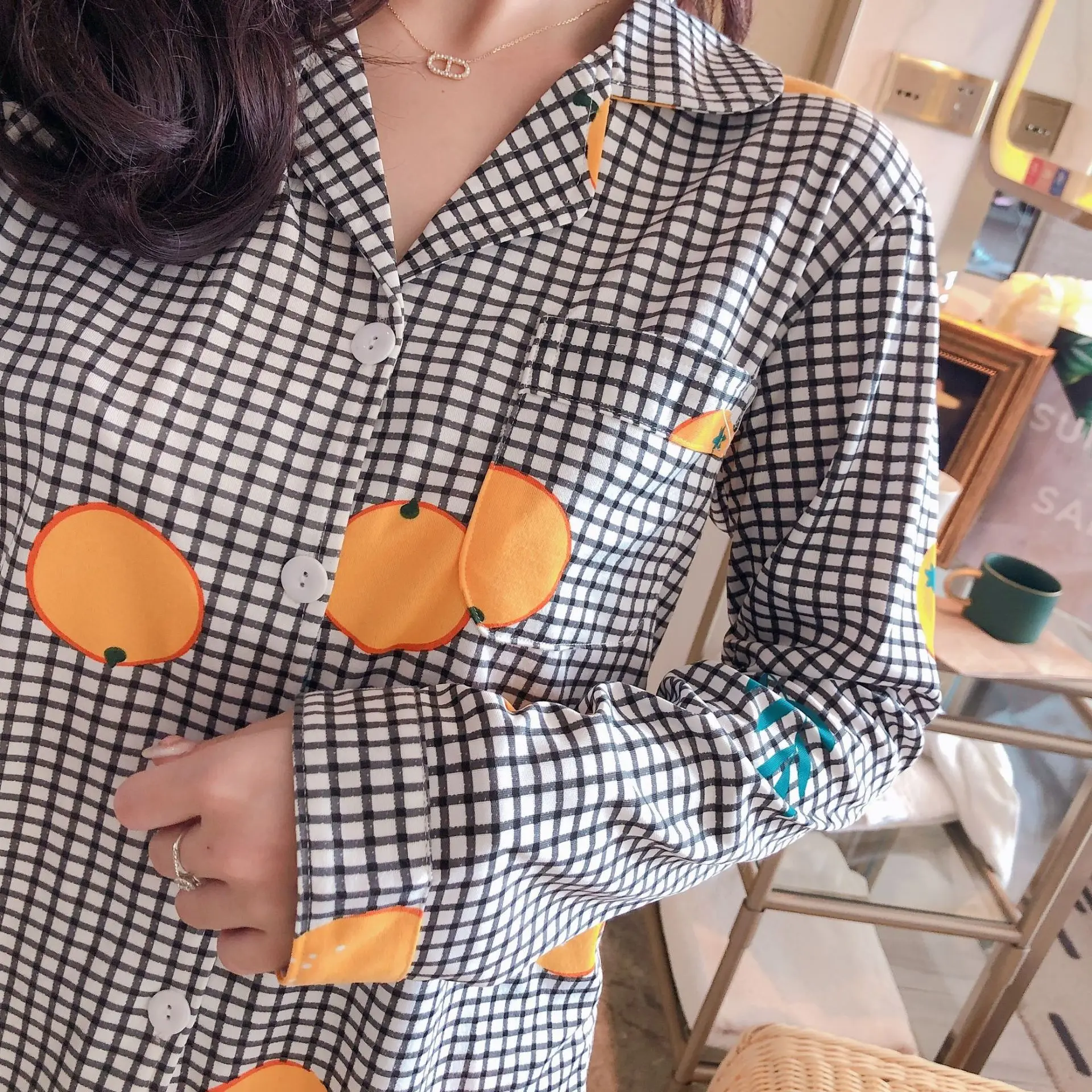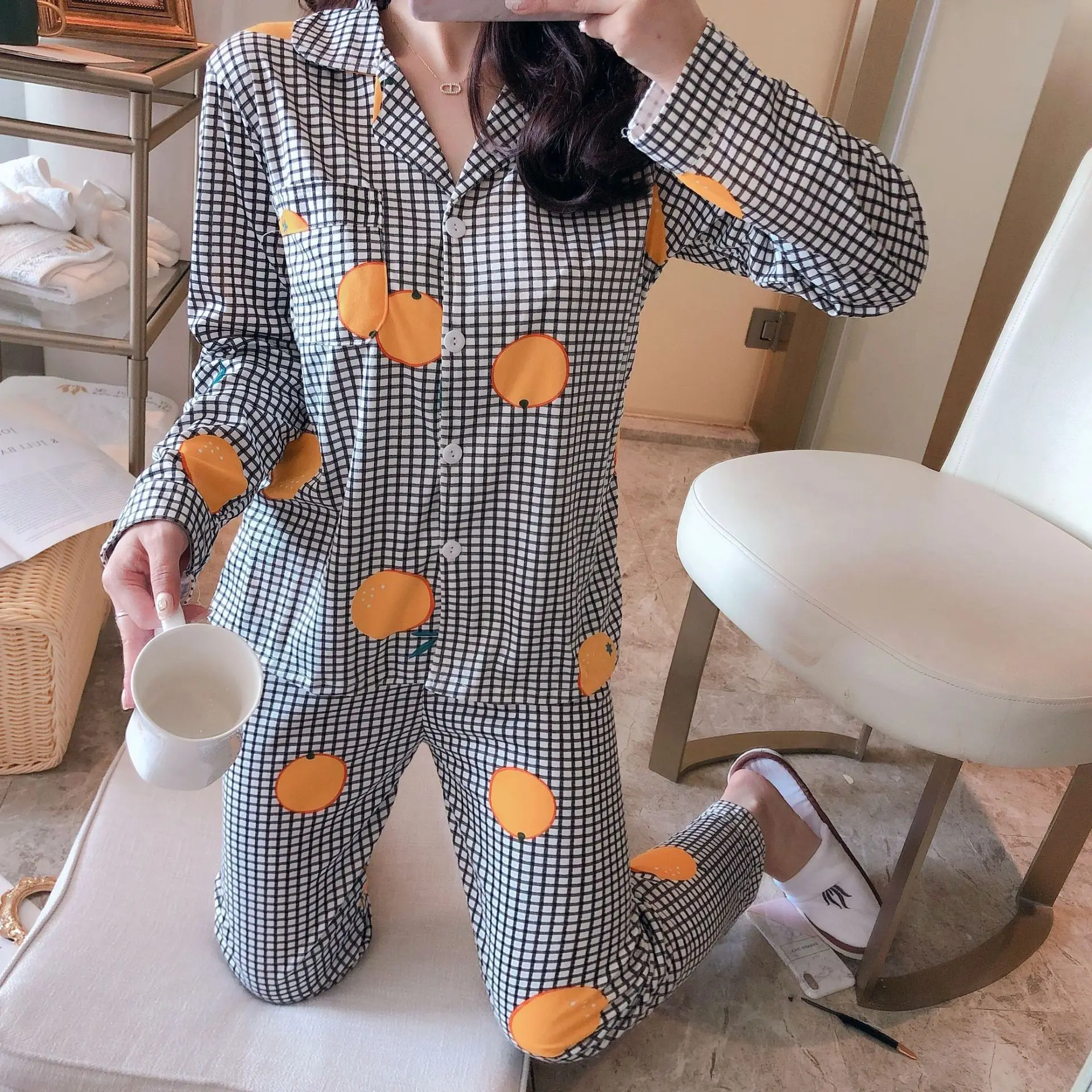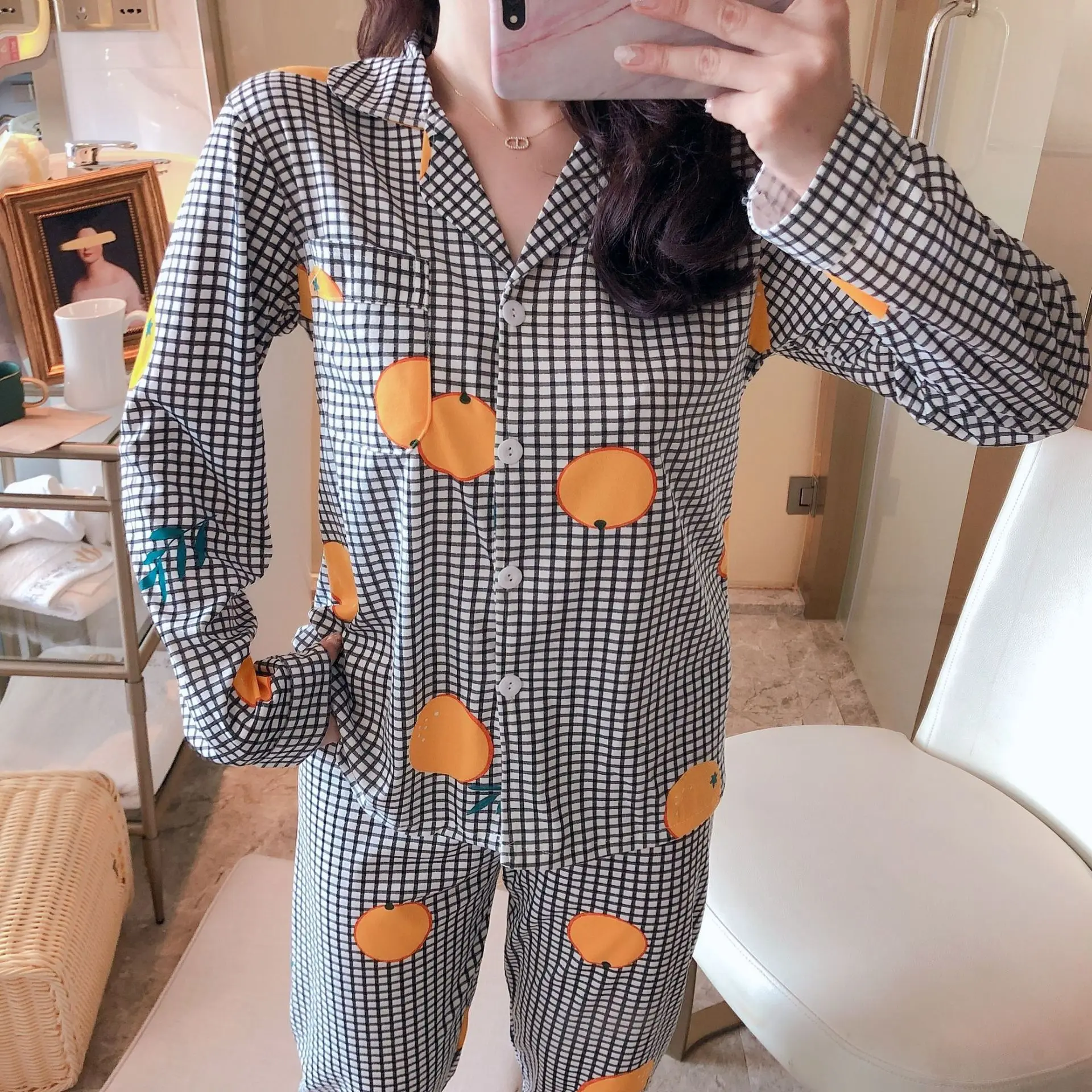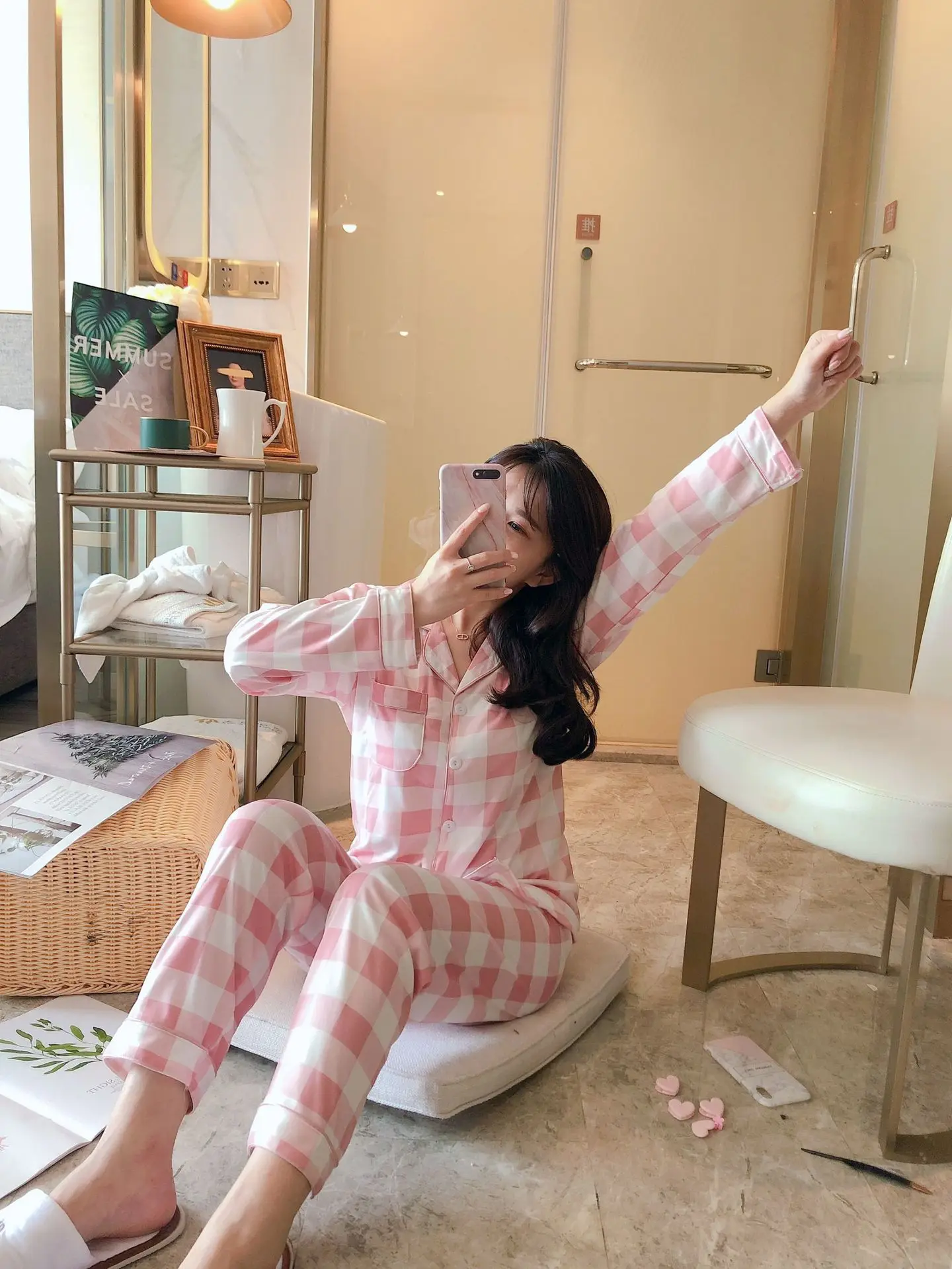 Пижамный комплект в клетку в Корейском стиле, домашняя одежда для ж...