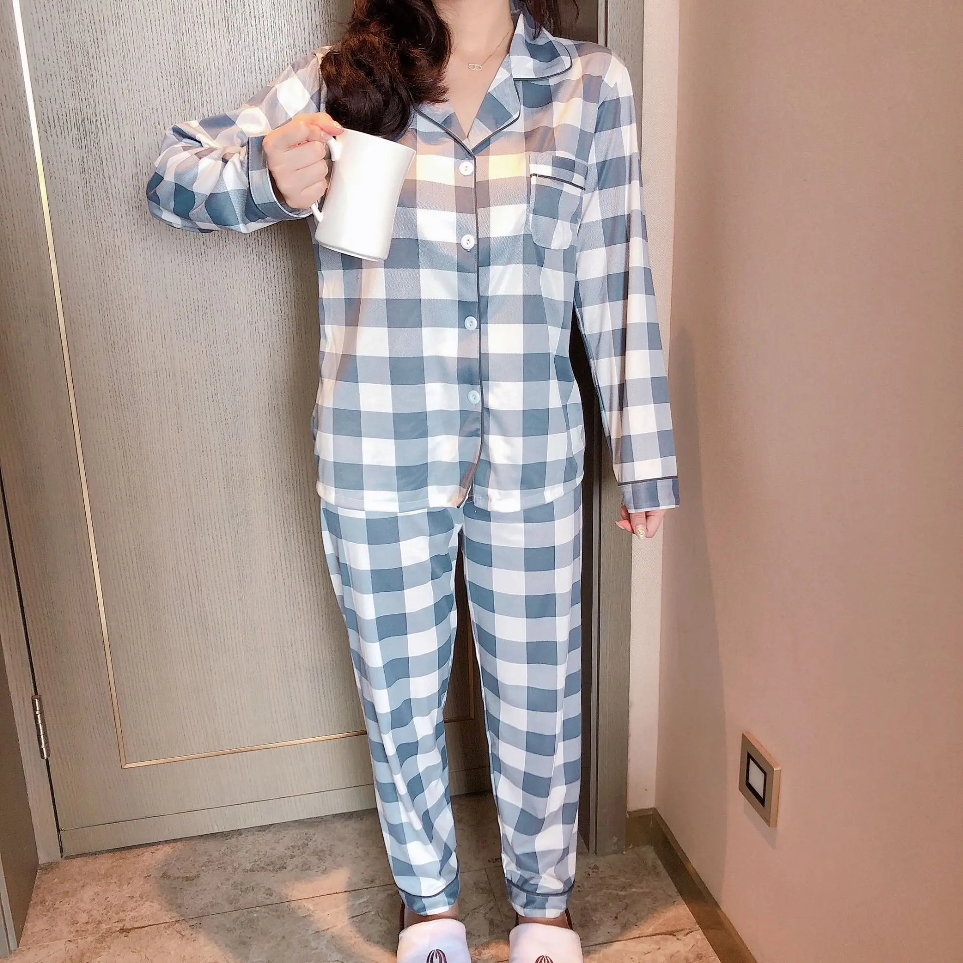 Женский пижамный комплект в клетку, Повседневная Свободная Мягкая д...