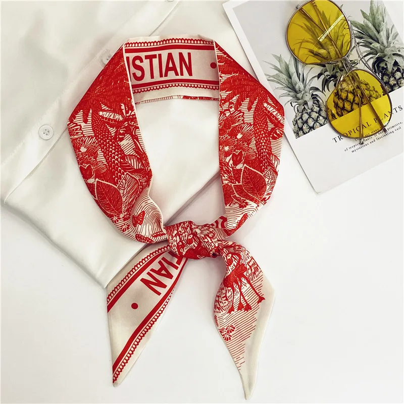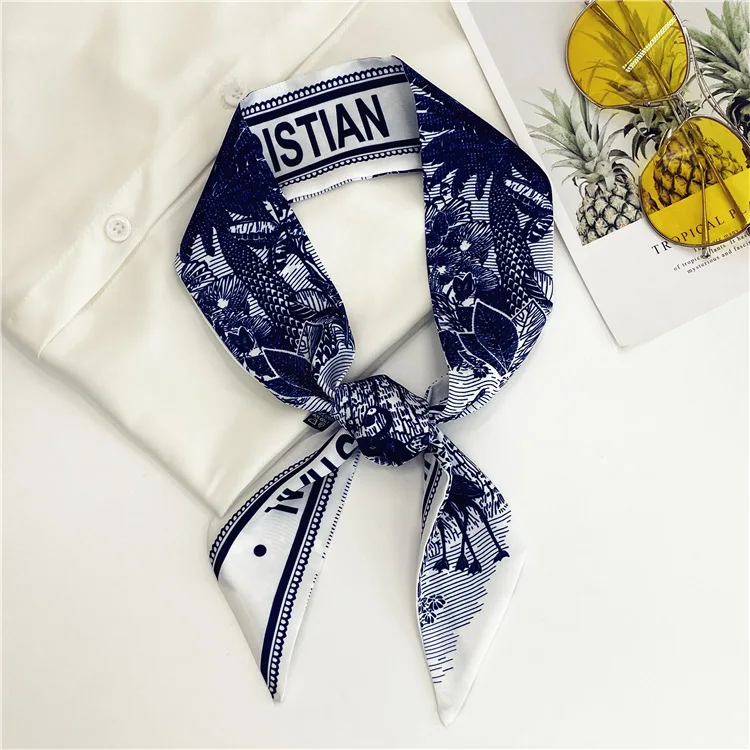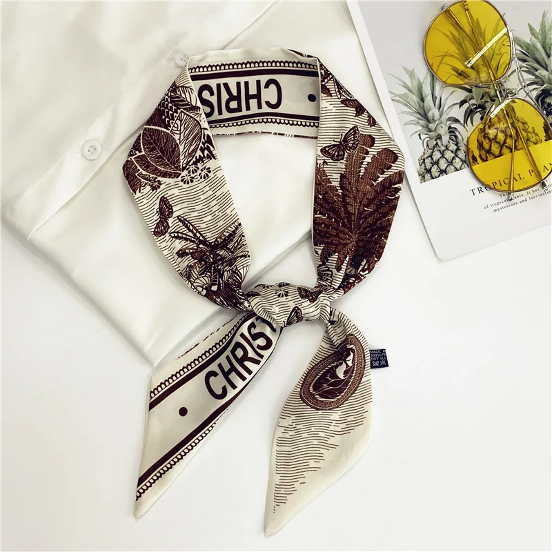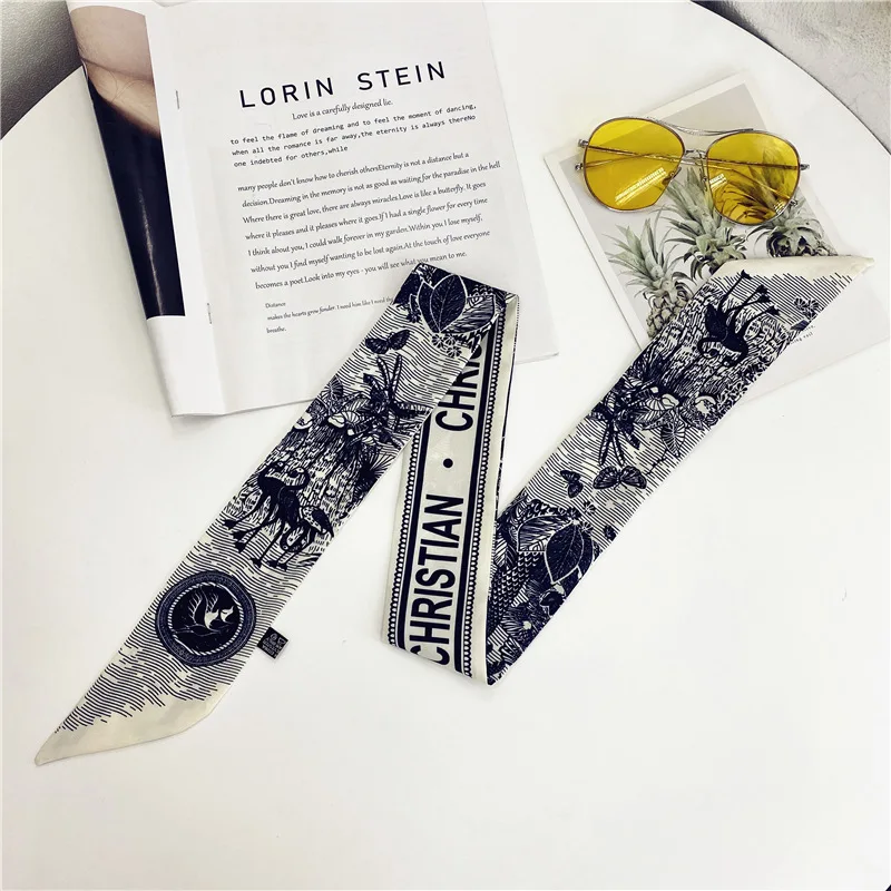 Маленький шелковый шарф для женщин, новинка 2021, Сумка с принтом и ручками, ленты, брендовый модный головной шарф, маленькие длинные узкие шарфы, оптовая продажа