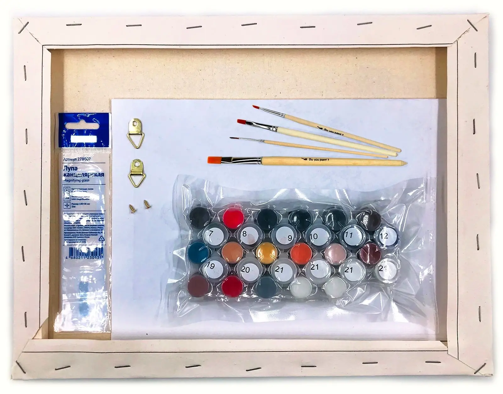 Все очень просто! При раскрашивании контуры, нанесенные на холст, не «поплывут», они не растворяются водой. Каждый сегмент пронумерован, чтобы не потеряться в красках.