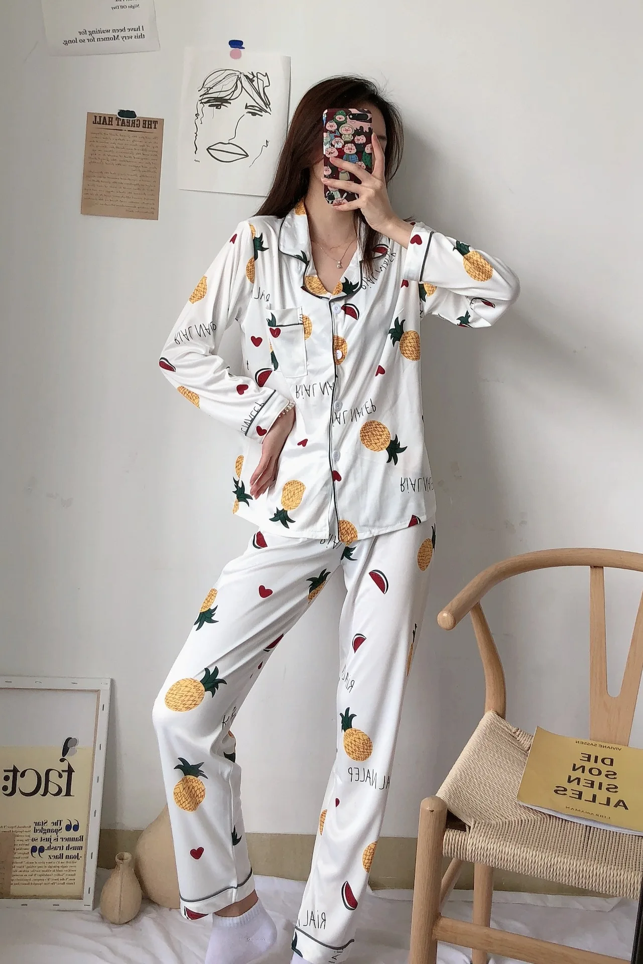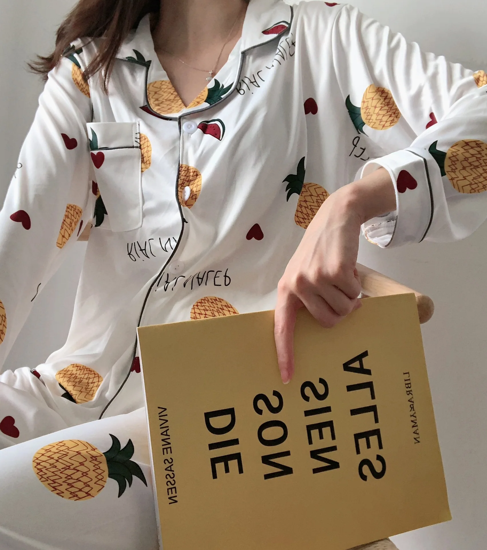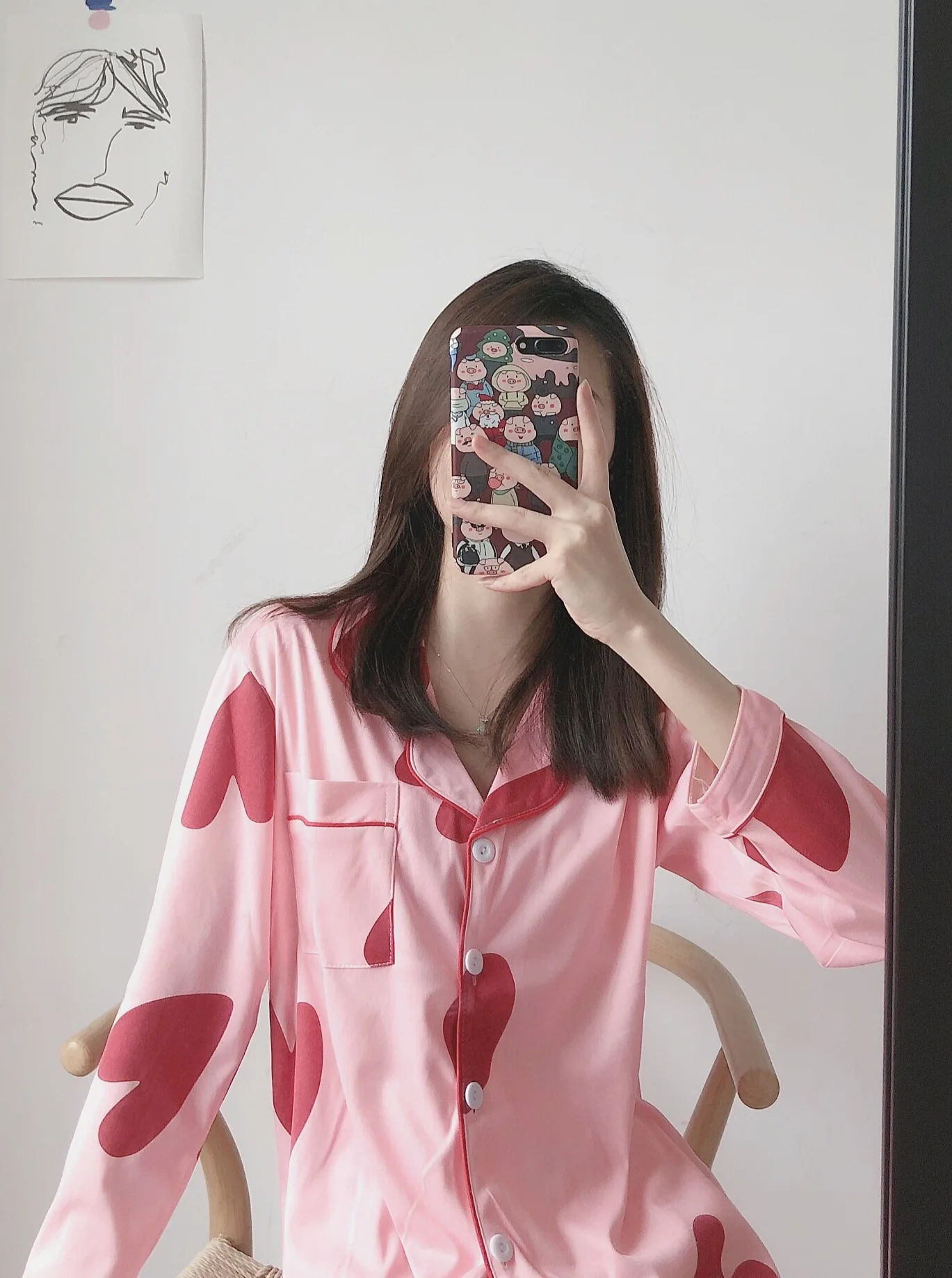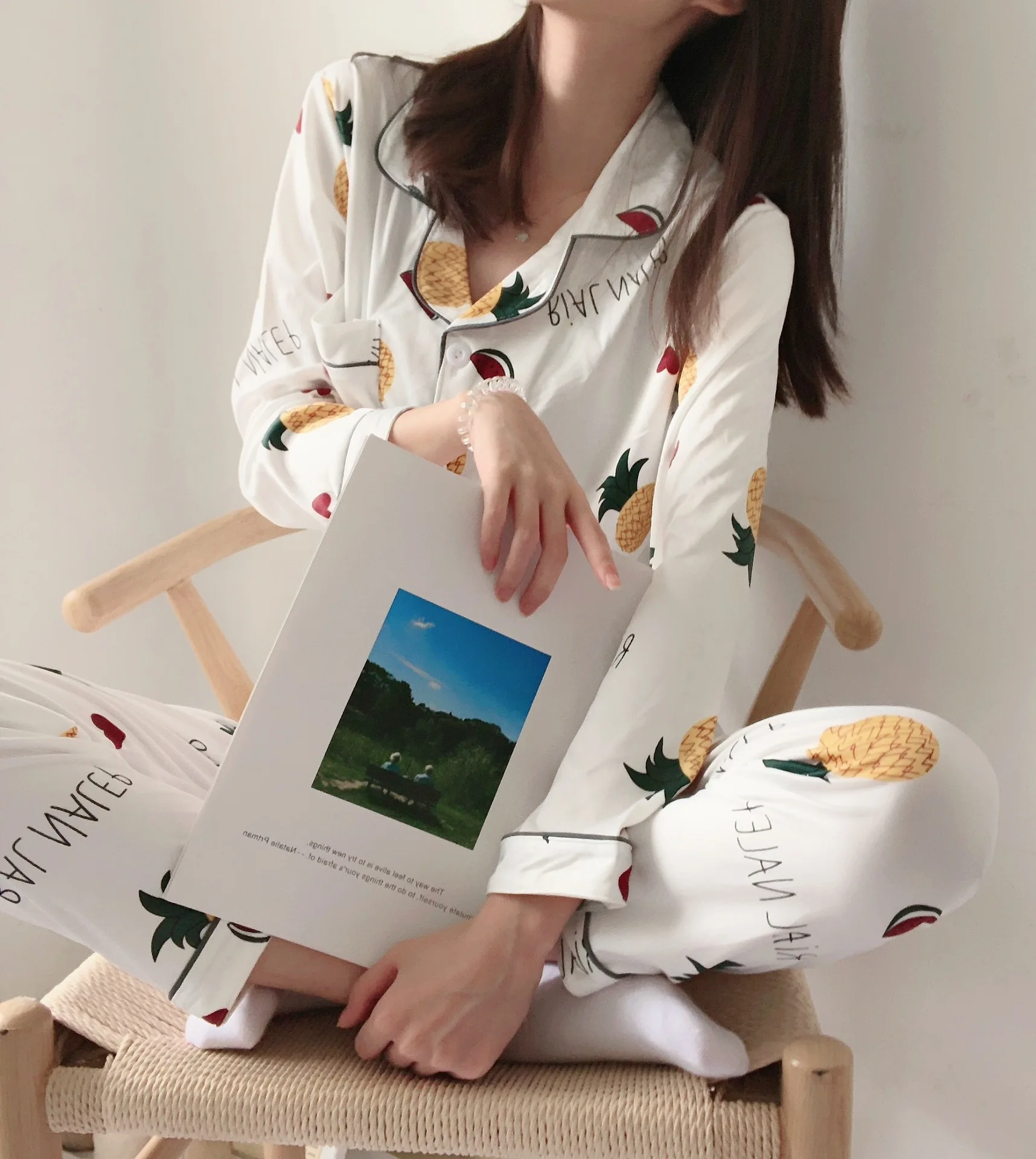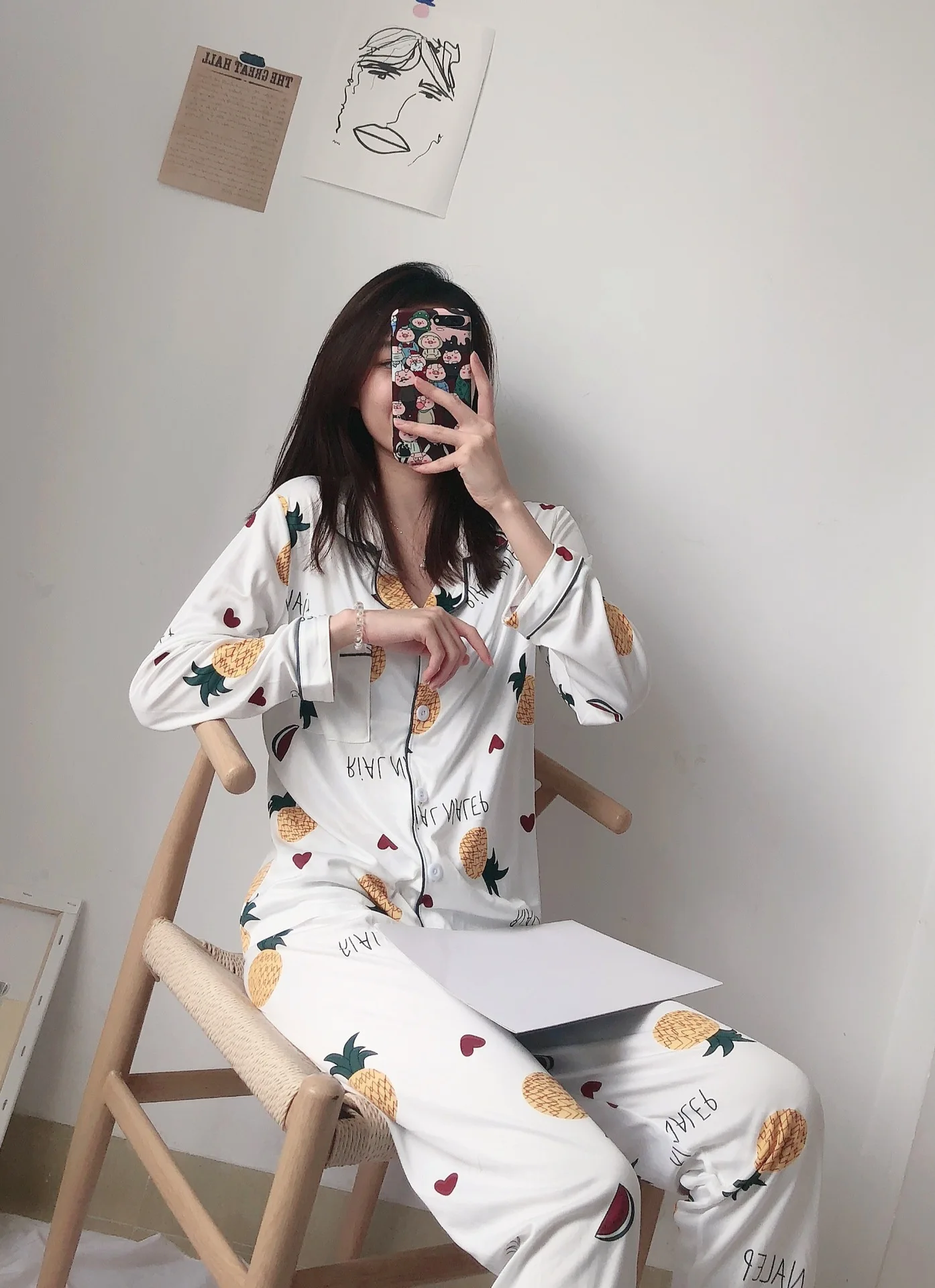 Осенний пижамный комплект с длинным рукавом, Весенняя женская одежд...