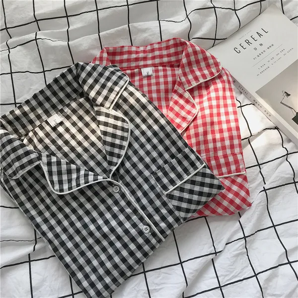 Осенние пижамные комплекты Ulzzang в клетку и в стиле преппи с длин...