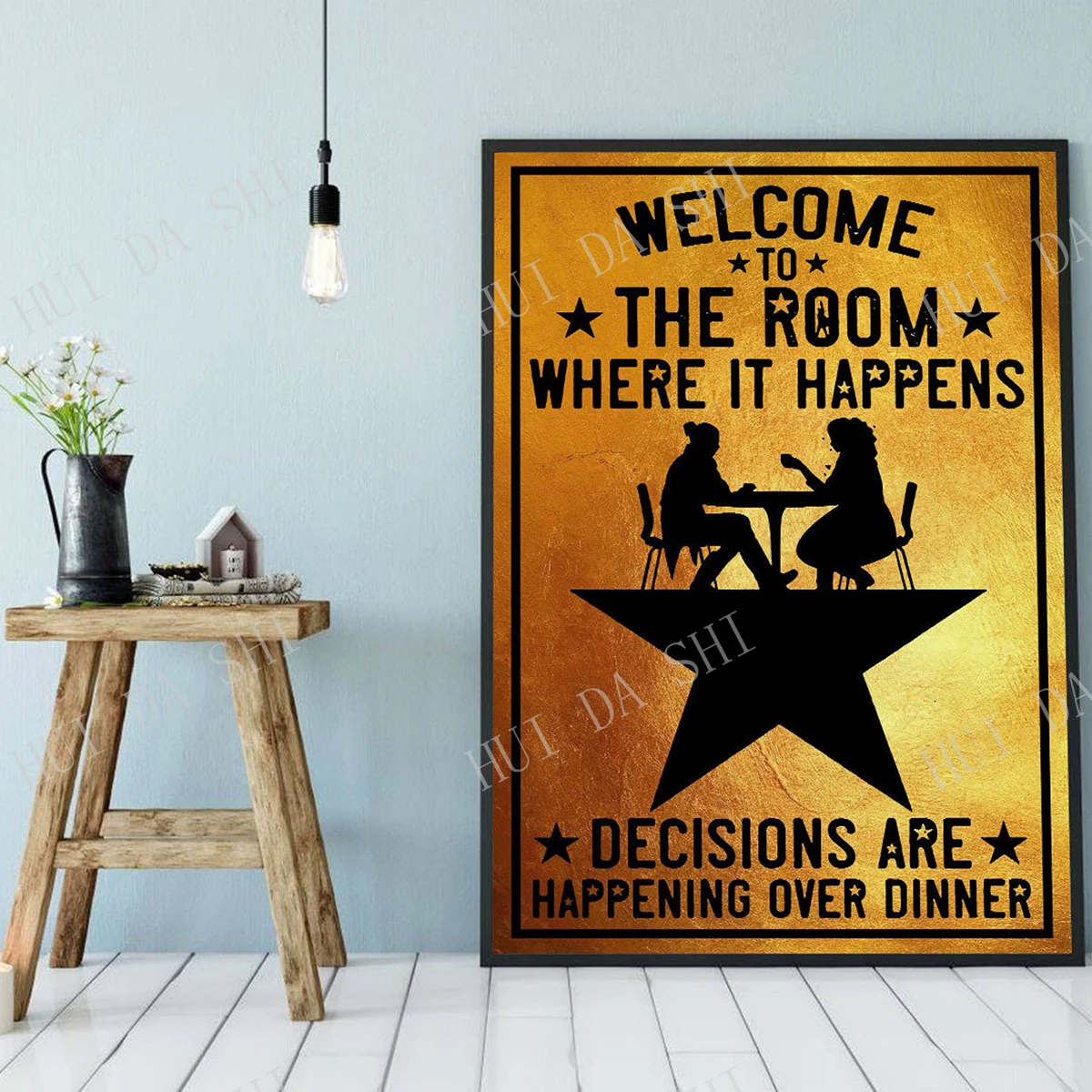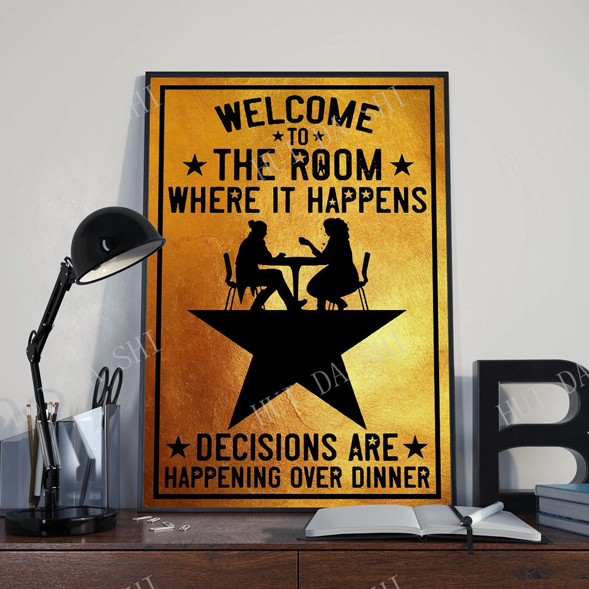 Добро пожаловать в комнату, где происходит решение, которые происходят за обеденным постером, Гамильтоном музыкальном, лучшие подарки