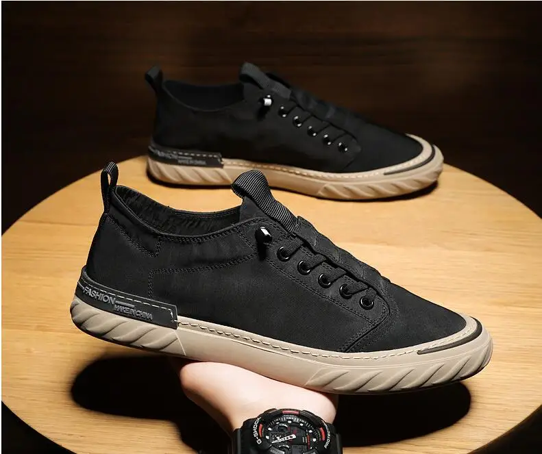 Мужские кроссовки из Вулканизированной Ткани, черные дышащие кроссо...