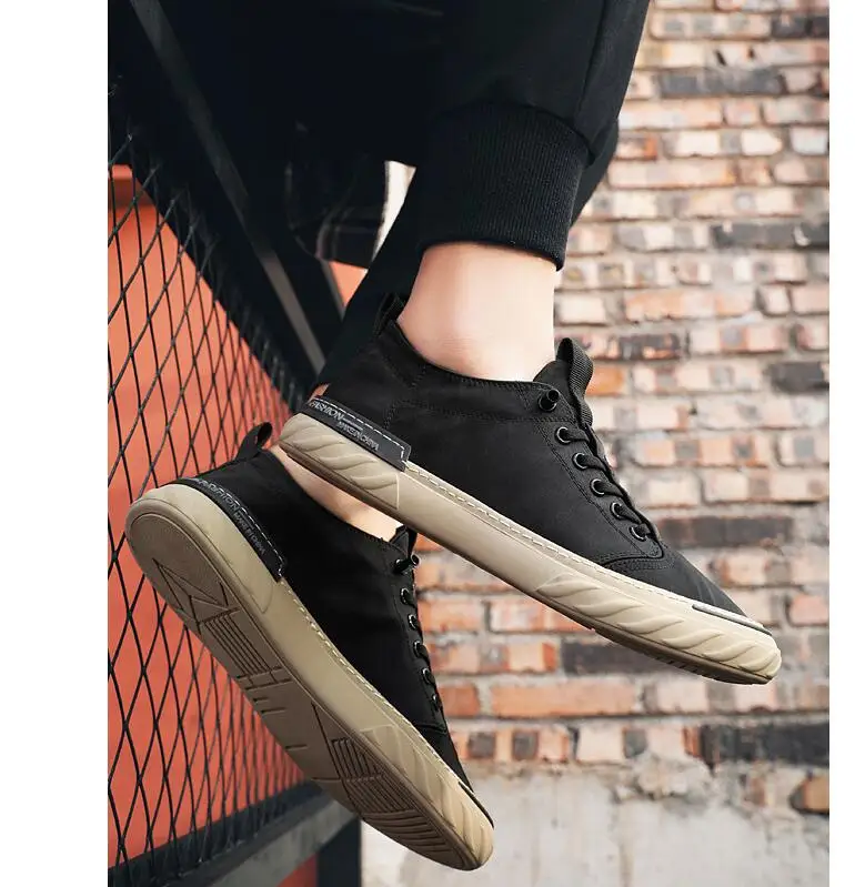 Мужские кроссовки из Вулканизированной Ткани, черные дышащие кроссовки для бега, повседневная обувь с одной педалью, новинка 2021