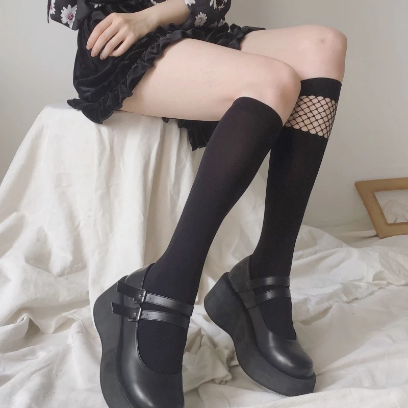 Гольфы женские, ажурные, однотонные, черные, в готическом стиле