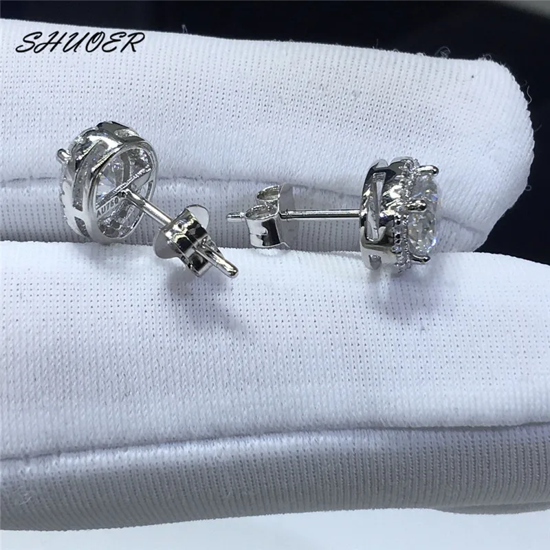 Серьги-гвоздики женские из серебра 100% пробы с бриллиантом 1-2 карата