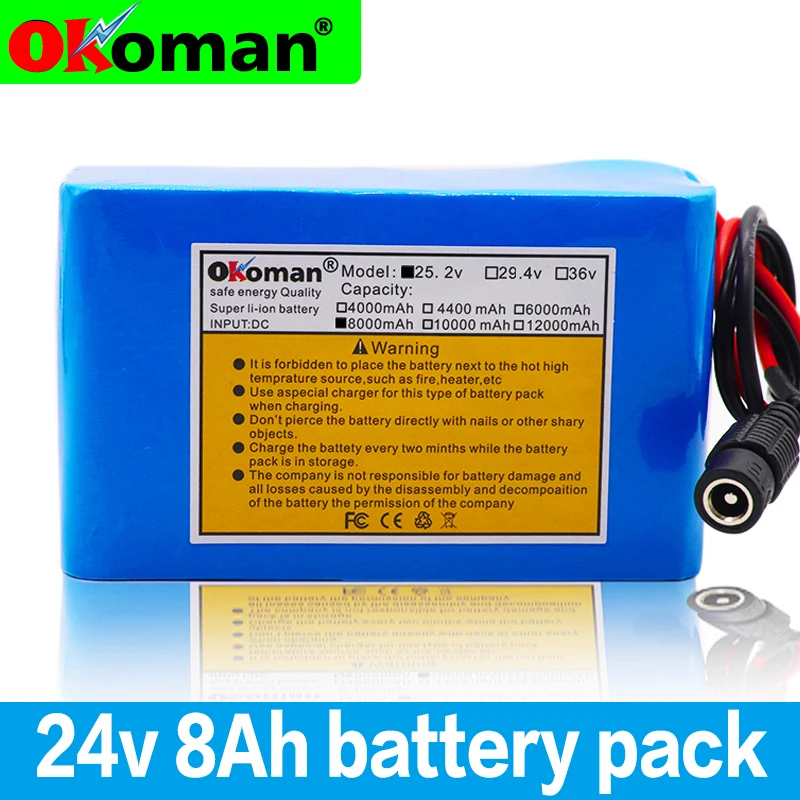 Okoman литий-ионный аккумулятор большой емкости 24 в 8 Ач 18650 25,2 в 8000 мАч электрический мопед велосипедЭлектрическийлитий-ионный аккумулятор