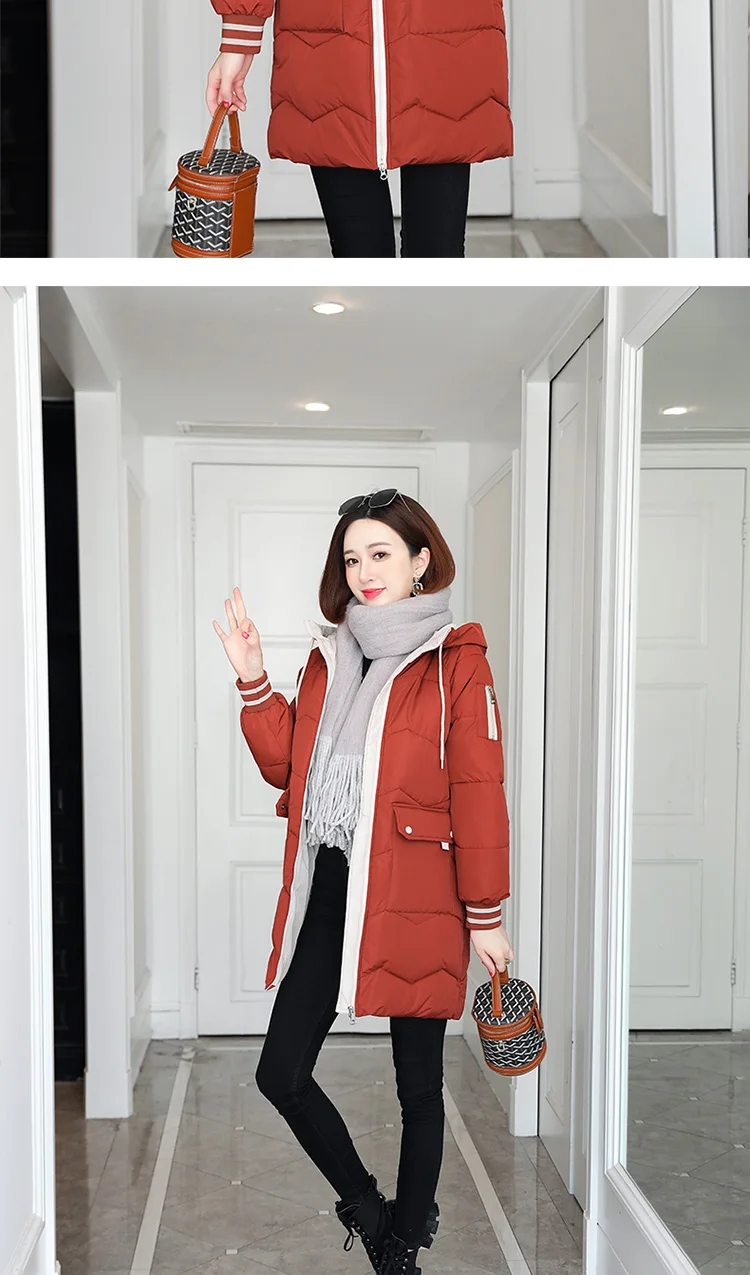 Высококачественная зимняя женская куртка Паркер толстая пуховая хлопковая куртка большой размер верхняя одежда средней длины с капюшоном женское теплое зимнее пальто