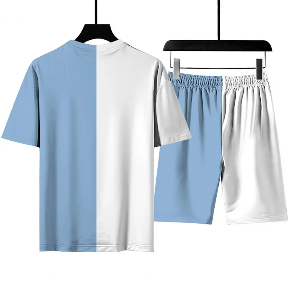 2021 стильный цветной спортивный костюм с коротким рукавом, комплект из двух предметов, футболка с круглым вырезом и шорты, мужской свободный спортивный костюм, спортивная одежда для повседневной носки