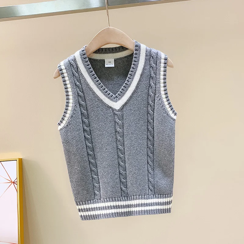 Осенний детский пуловер; Плащ с v-образным вырезом; Школьная форма для мальчиков и девочек; Школьная формаДетский хлопковый жилет для мальчиков и девочек