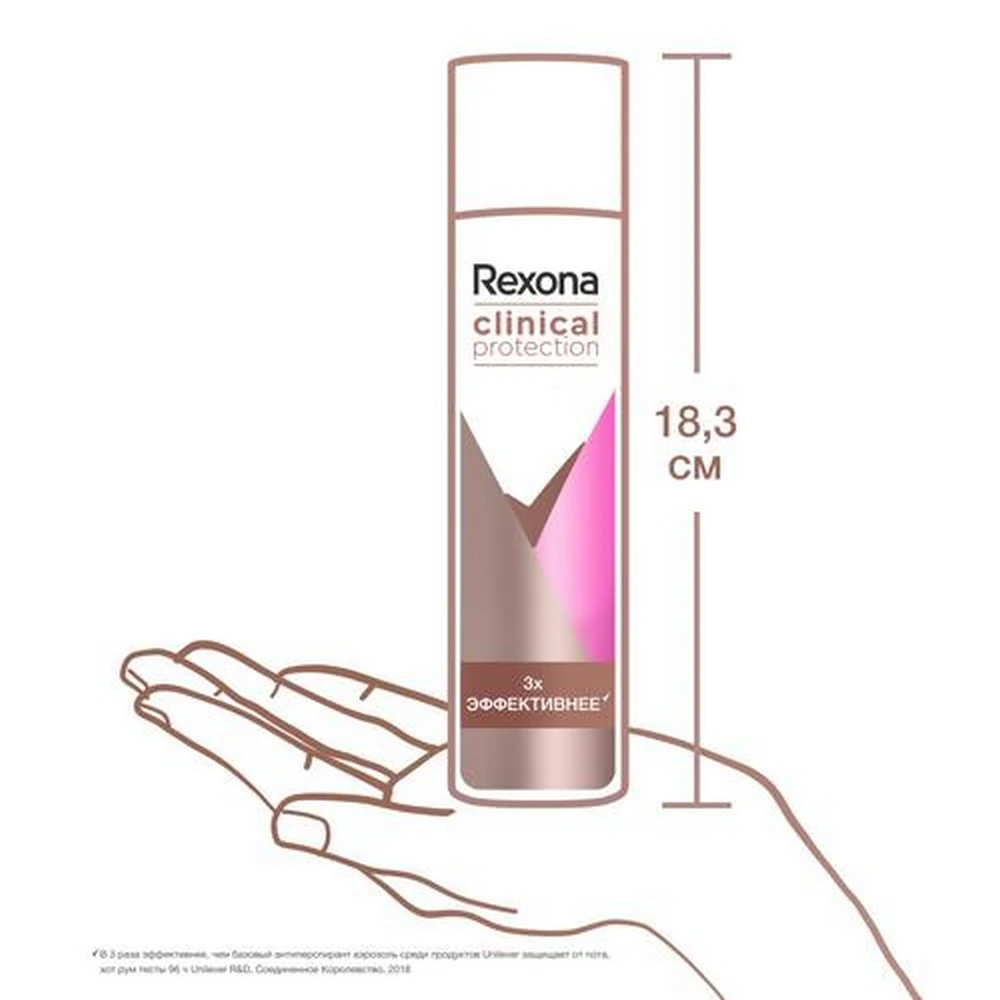 Клиническая защита/защита + (кликнул протекшн/защита +) защита от потоотделения. * В 3 раза лучше, чем базовый антиперспирантный аэрозоль среди продуктов Unilever защищает от потных комнатных тестов 96 H Unilever R & D, Великобритания, 2018 г. ** Много товаров Unilever.