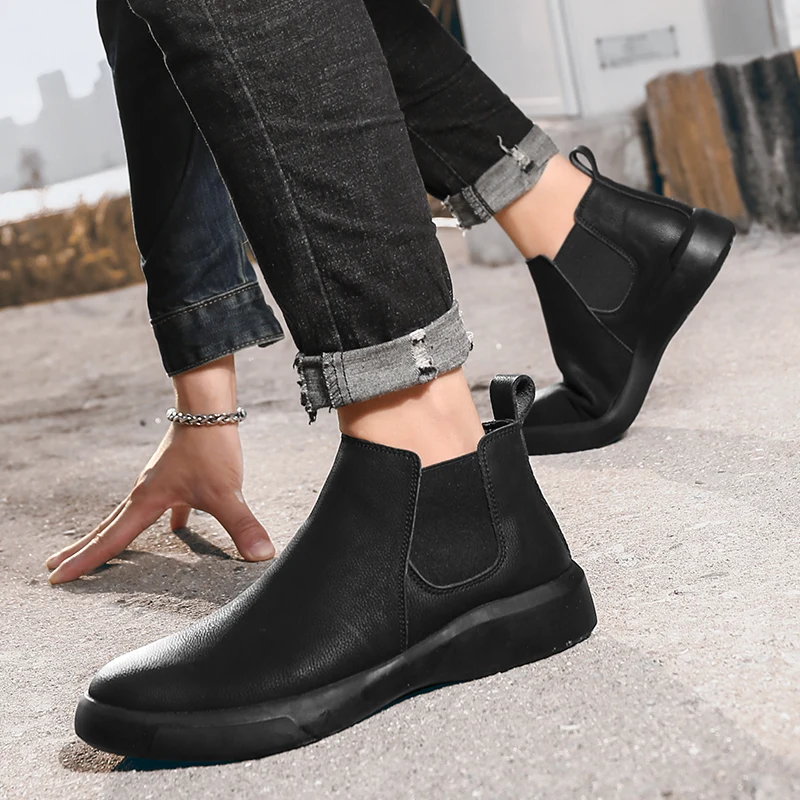 Мужские ботинки челси без шнуровки, модная повседневная обувь с высоким берцем, Ботинки Martin, ботильоны из натуральной кожи в британском стиле для мужчин