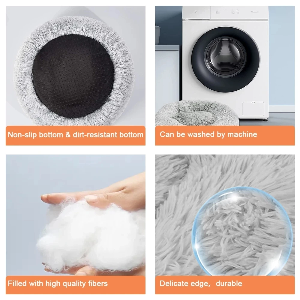 Успокаивающий и антитревожный: Идеально подходит для домашних животных, чтобы скручиваться или растягиваться, в сочетании с глубокими полостями, поднятый обод вокруг обеспечивает тепло с чувством безопасности, это помогает им быстрее успокоиться, расслабьте беспокойство и хорошо спите.