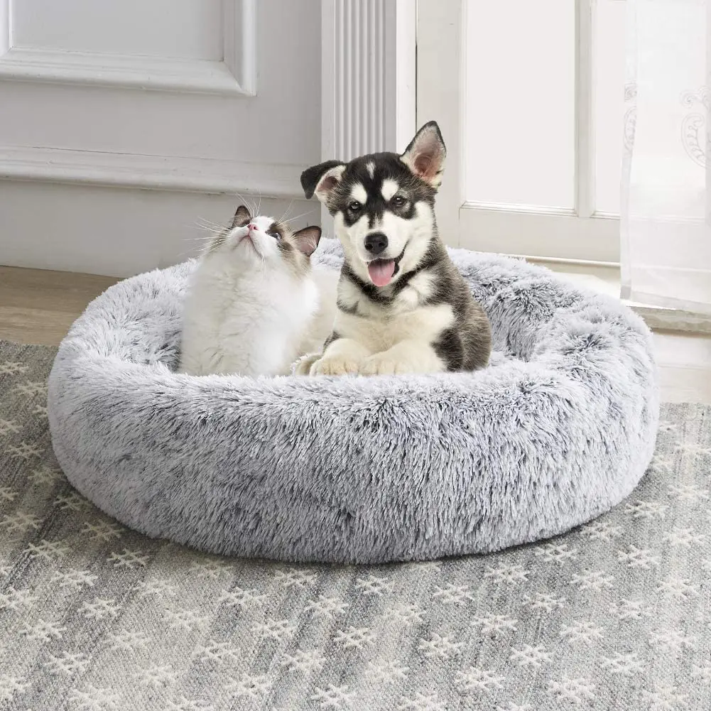 Спальное место для собаки кошка пижамы для малыша успокаивающий кровать ортопедические стельки для домашних животных в форме пончика Cuddler круглые плюшевые кроватью для больших собак для средних и мелких собак и кошек