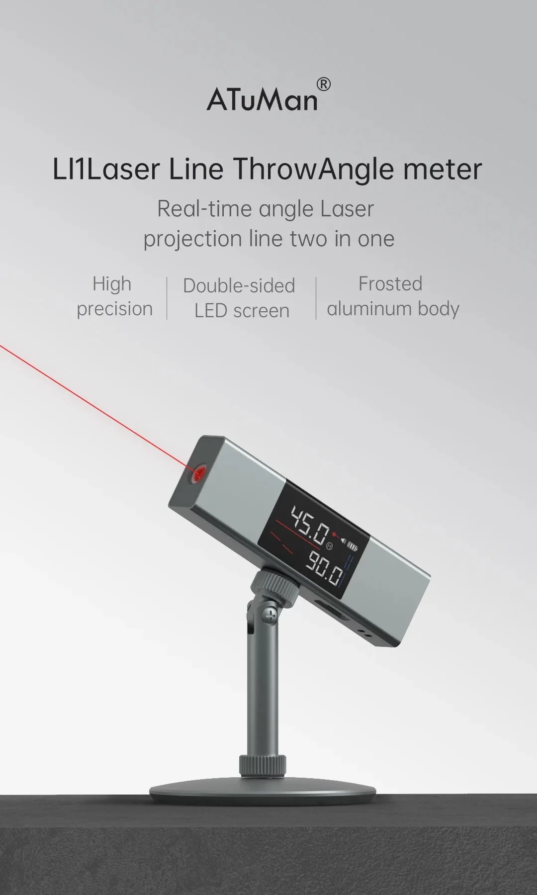 Весь светильник около 70 г, 1/5 Вес обычного уровня, легко управлять одной рукой. Корпус такой же тонкий, как 20 мм, с 2 удобными и простыми кнопками, что обеспечивает исключительный опыт работы. Строительство без боязни сдержанности, легко в течение всего дня.
