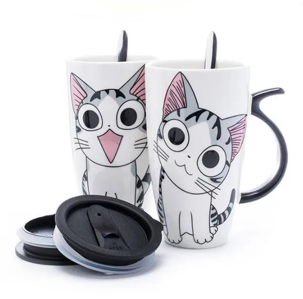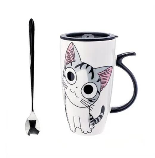 600 мл креативная керамическая кружка для кошки с крышкой и ложкой, мультяшная чашка для чая и молока, фарфоровые кружки, хорошие подарки