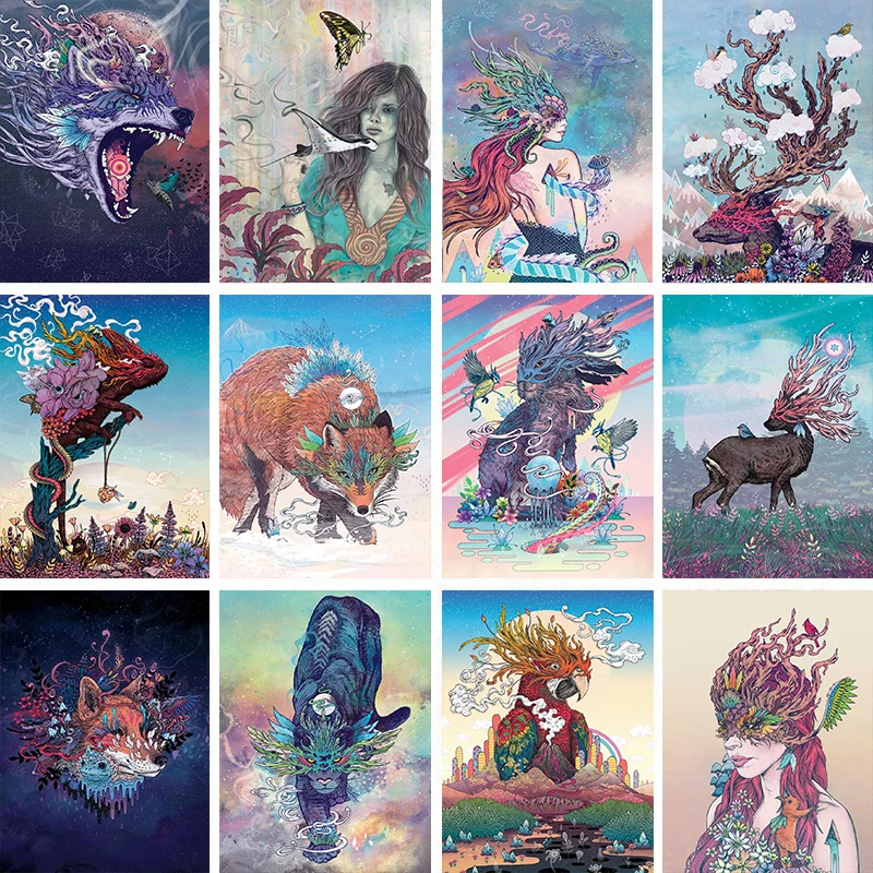Картины на холсте GATYZTORY, картины с изображением цветов, оленей,...