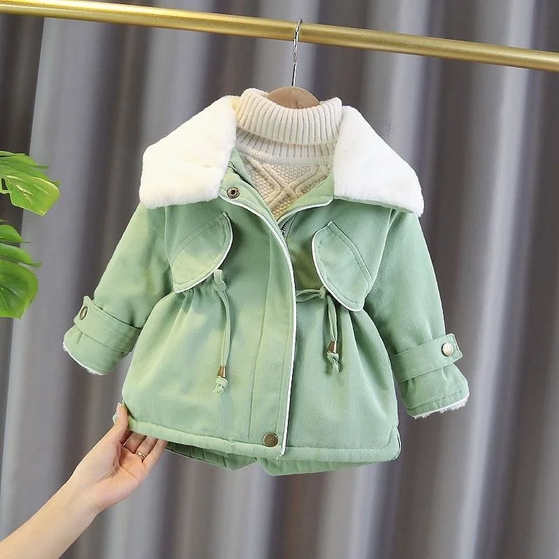 Куртки для девочек, новинка 2021, зимнее пальто в иностранном стиле, Детские стеганые пальто, зимняя одежда с бархатной подкладкой, одежда с меховым воротником