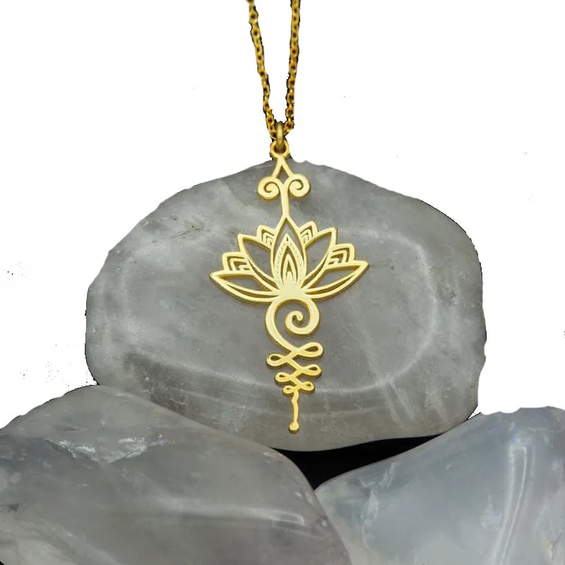 Ожерелье с подвеской ручной работы Unalome с цветком лотоса-золотые...