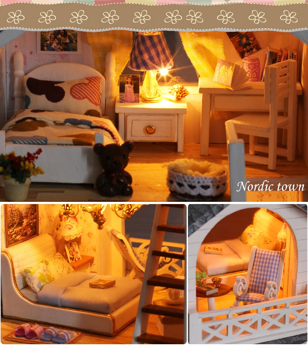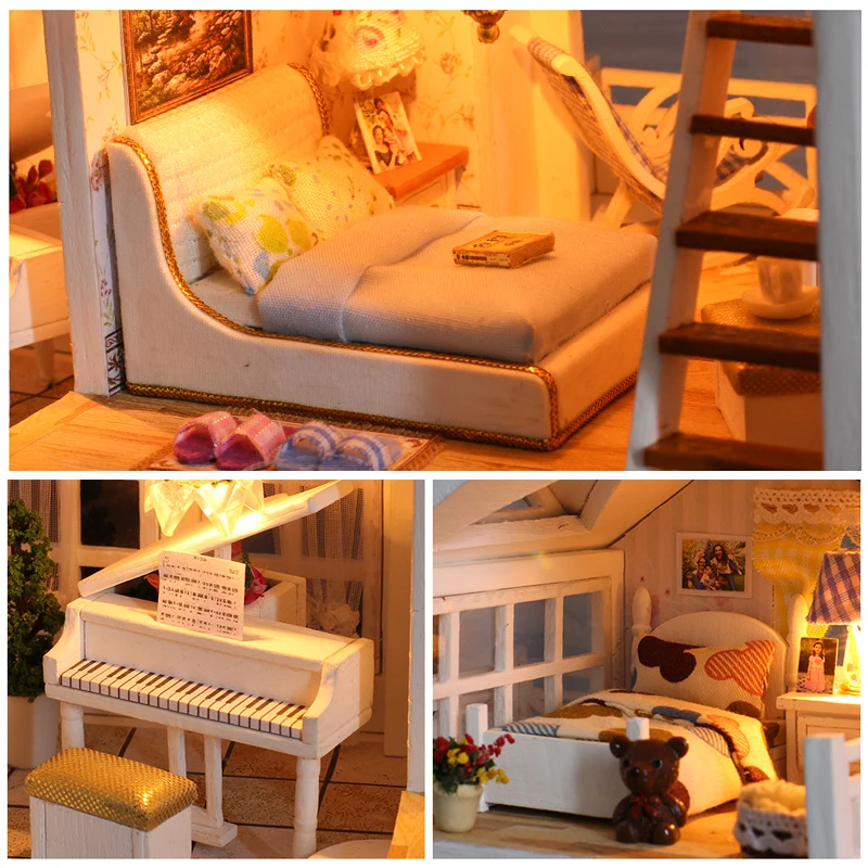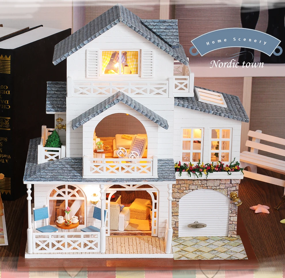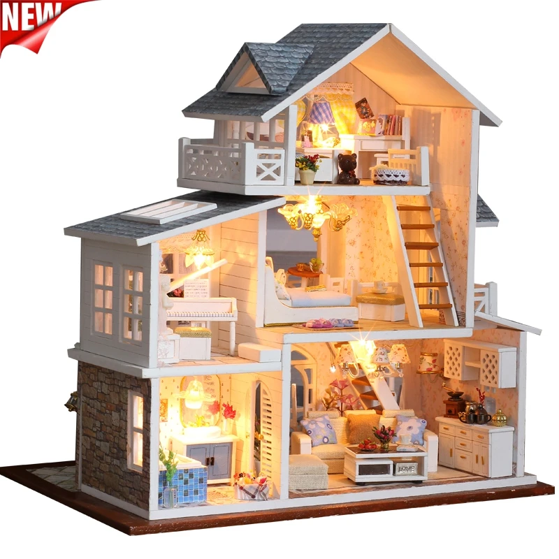 Кукольный домик "сделай сам", деревянные кукольные домики, миниатюрный кукольный домик, набор мебели, музыкальный светодиодный дом для детей, подарок на день рождения