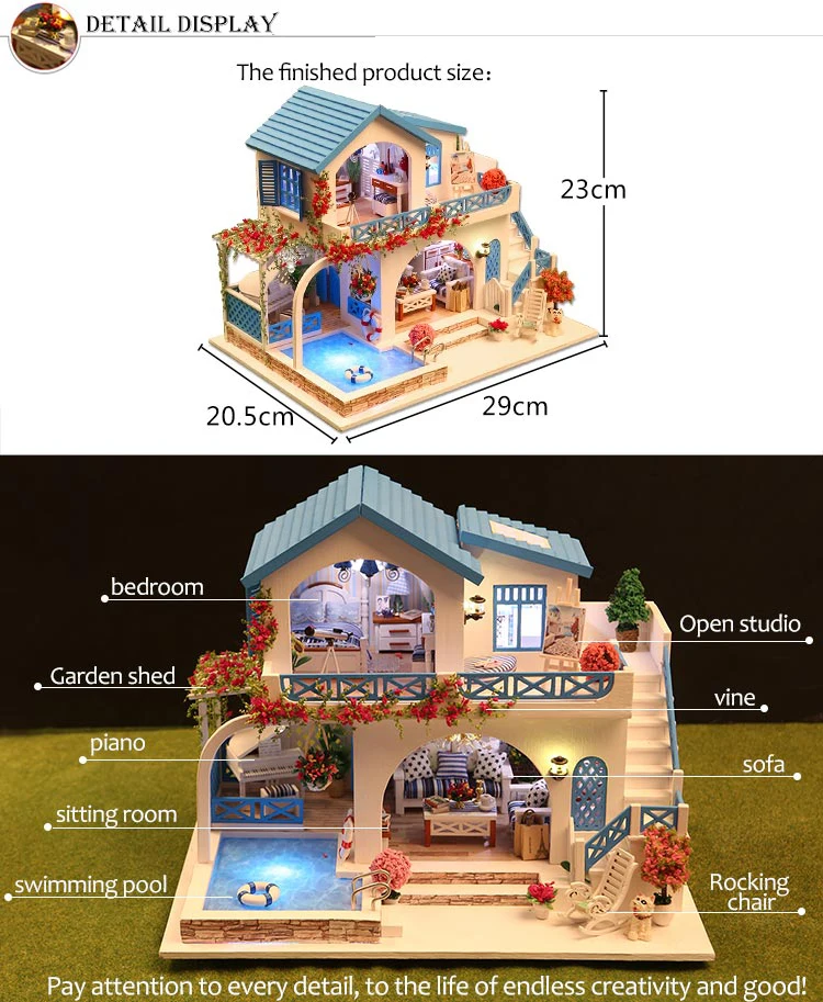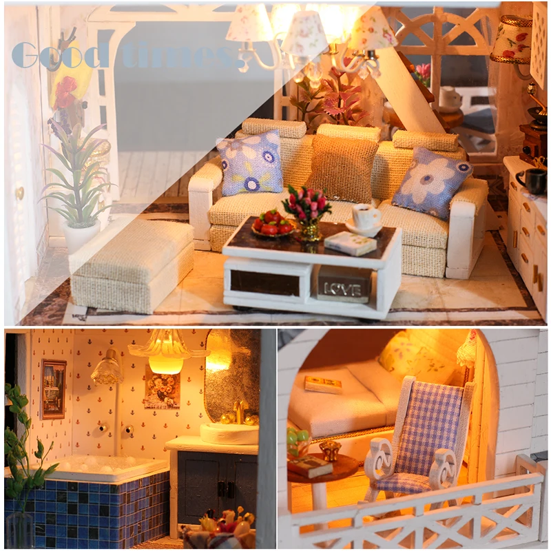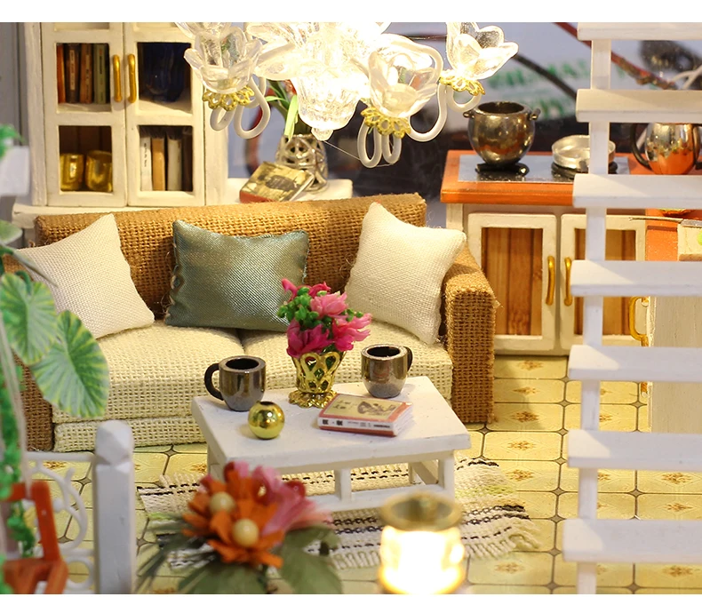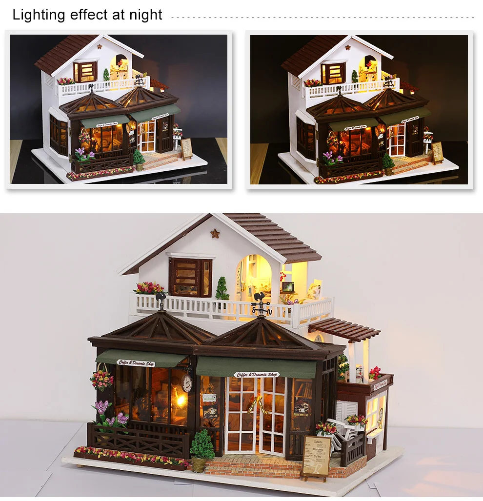 Кукольный домик "сделай сам", деревянные кукольные домики, миниатюрный кукольный домик, набор мебели, музыкальный светодиодный дом для детей, подарок на день рождения
